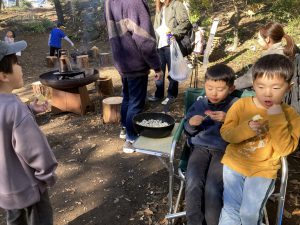 焼きマシュマロが気に入り何度もおかわりす子もいたりと、焼く事がきっかけで、火と関わる事で、新たな発見をしてくれたのではないかなと思いました。