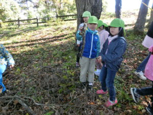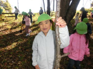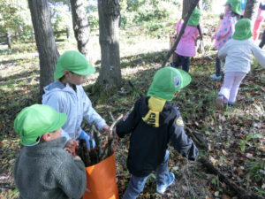 子どもたちは園庭とは違う環境の中でワクワクしながら、こんな枝がいいかな?細い方がいいのか?太いのは?と実際に焼き芋に使われることを考えながら拾うことができました。