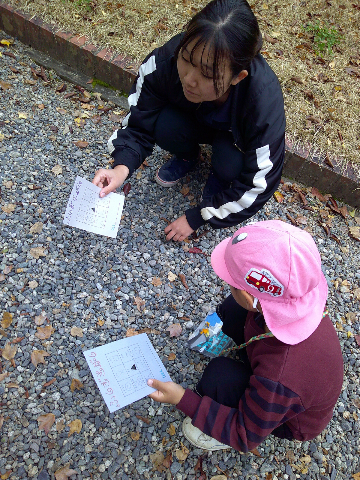 ・短大の生徒さんがいろいろ準備をしてきてくれて、動物ゲームやネイチャービンゴゲーム、万華鏡つくりなどあまり経験したことのないこともあり、子どもたちはとても楽しく遊ぶことができた。職員も学ぶことが多くあり、今後に活かしていきたいと思う。