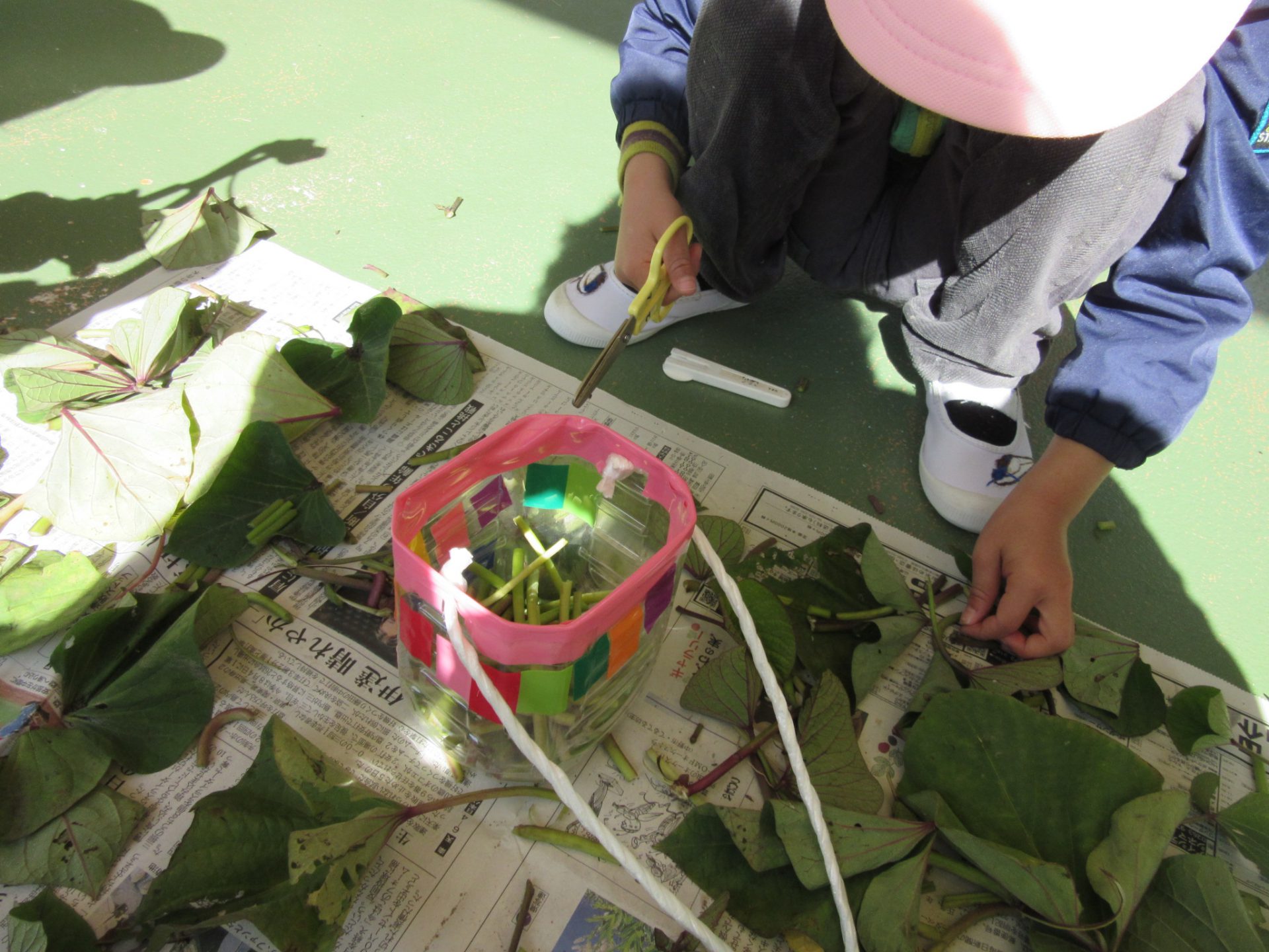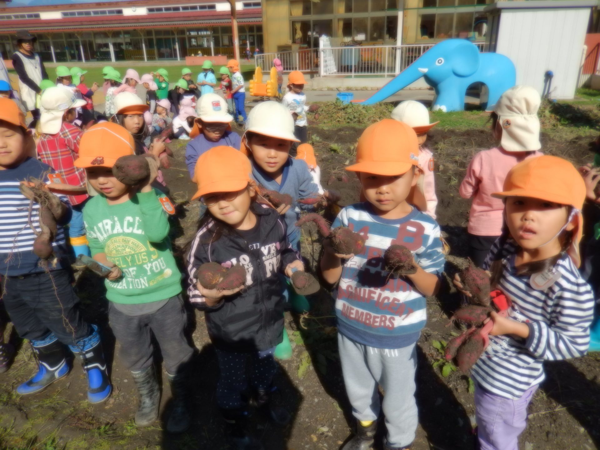 こどもたちが春から水やり、草取りをして「大きくなーれ!」と楽しみに育ててきたさつまいも、生長を通して、土に触れる体験や、雨や太陽の大切さも知ることができました。