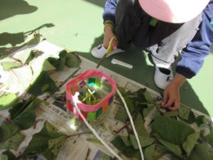 年長さんは、お芋のつるでリースつくりをしたよ!