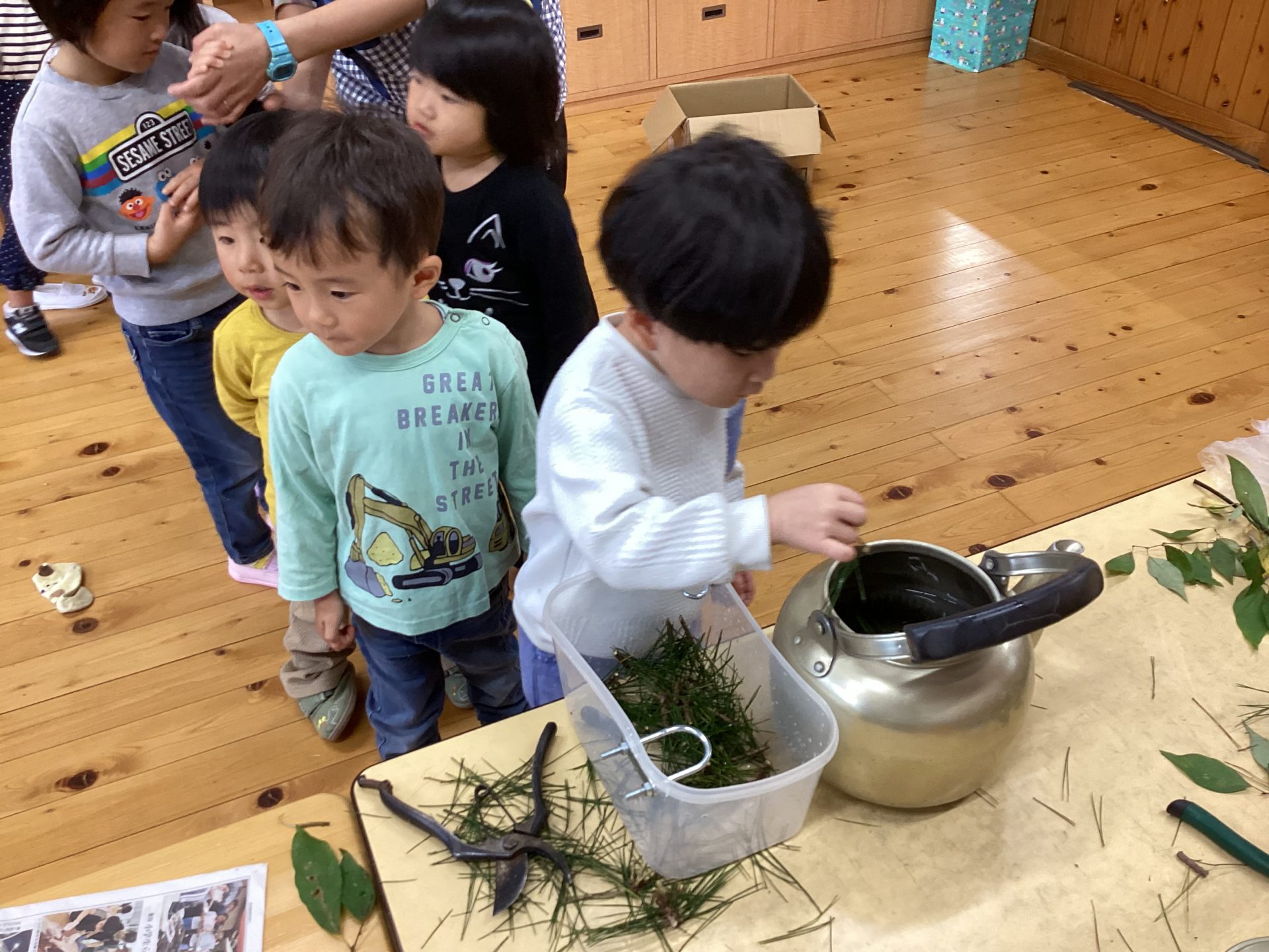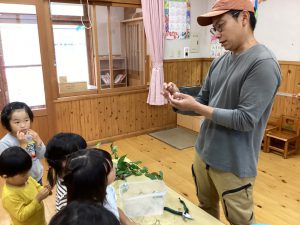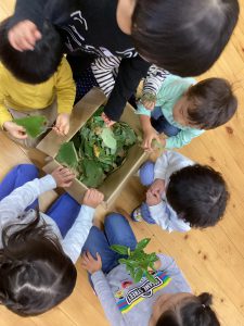 ・身近な植物を使って、「匂いをかぐ(鼻)」「噛んで味を確かめる(口)」「煮だした水の変化を見る(目)」と、五感を使って楽しめるものになっていたので、今後も自然に触れる中でさらに興味関心につながって欲しいと思う。