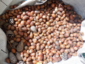 どんぐりに顔を書いて 「私の家族を作ったよ」