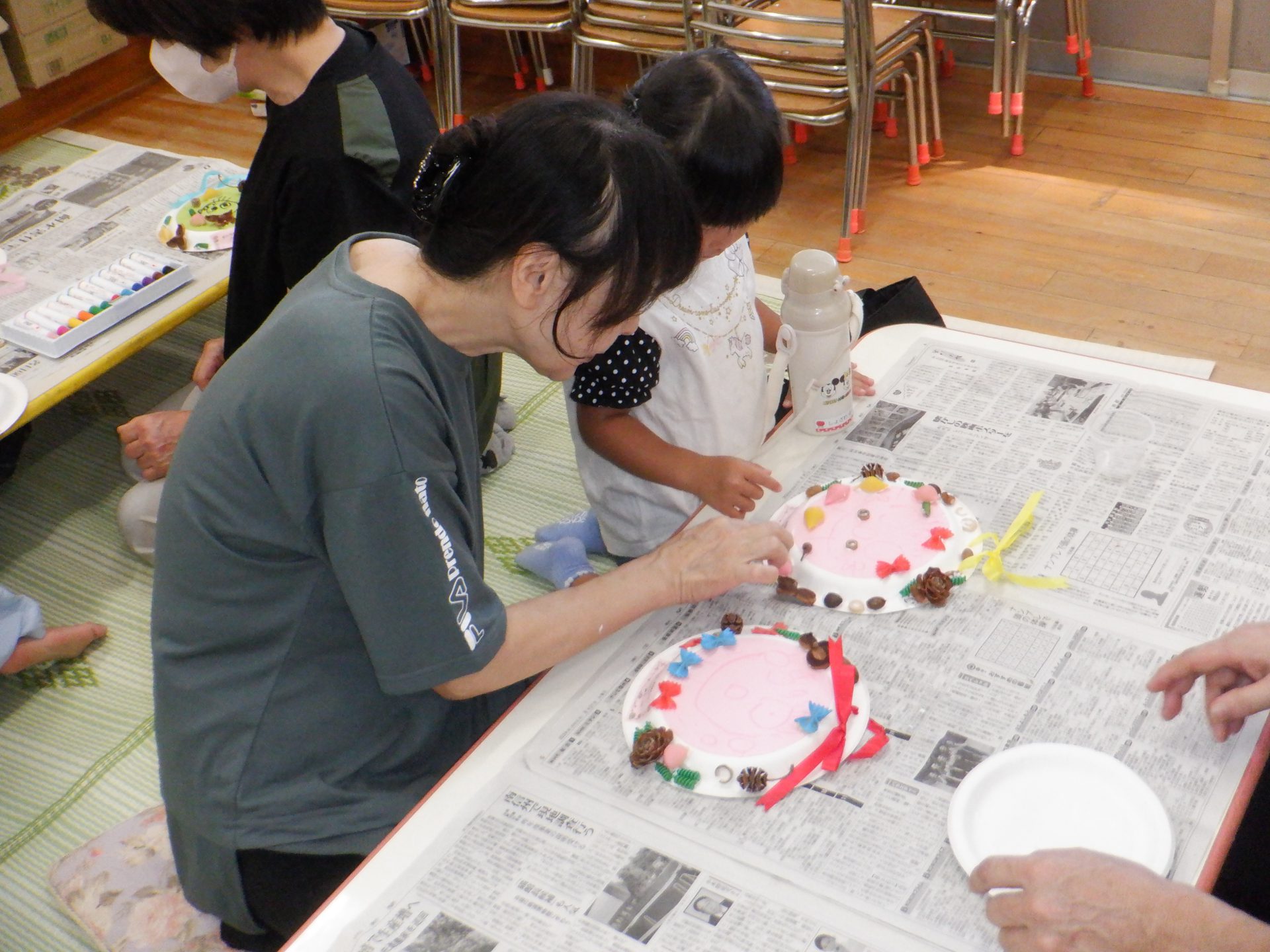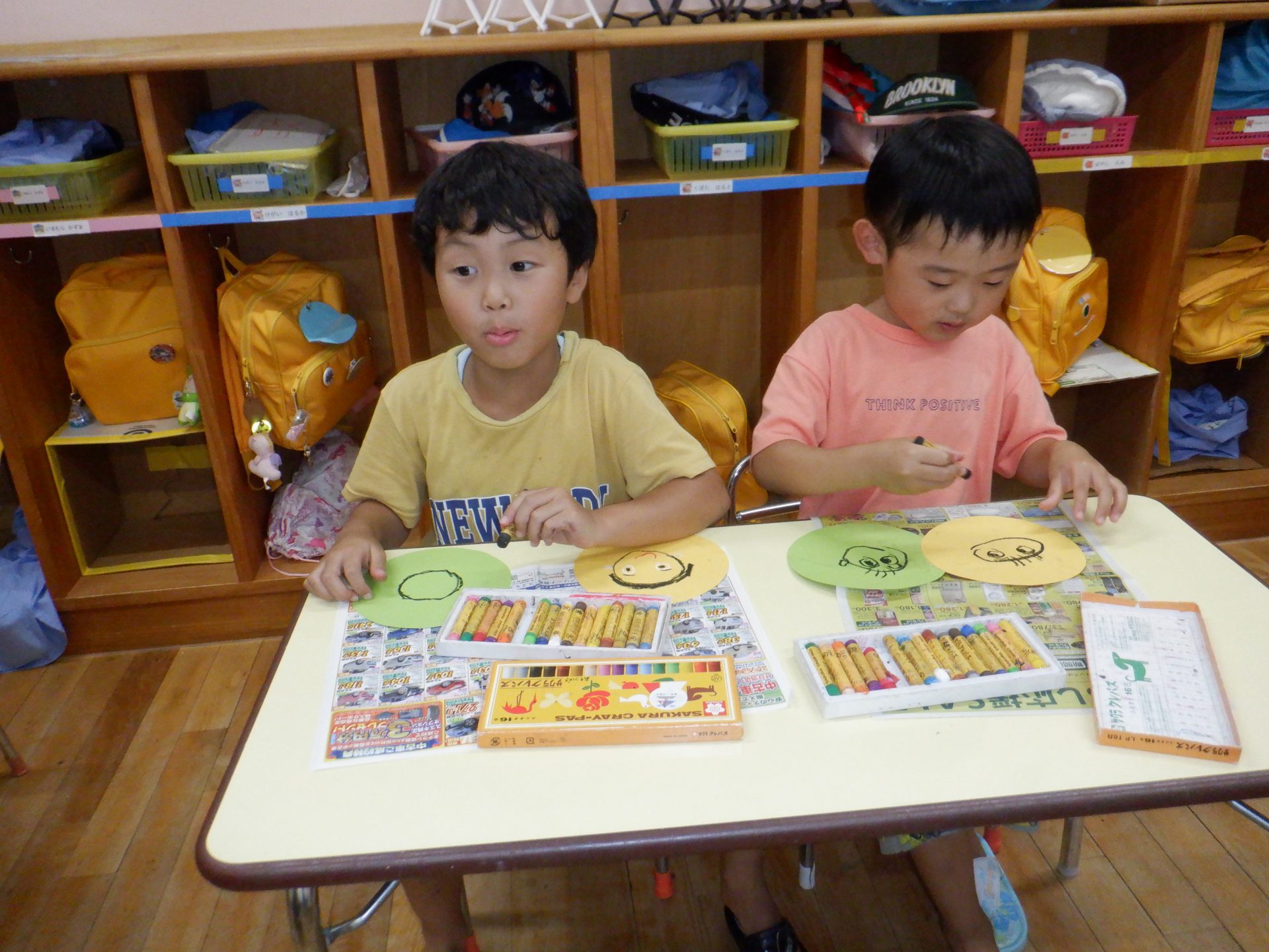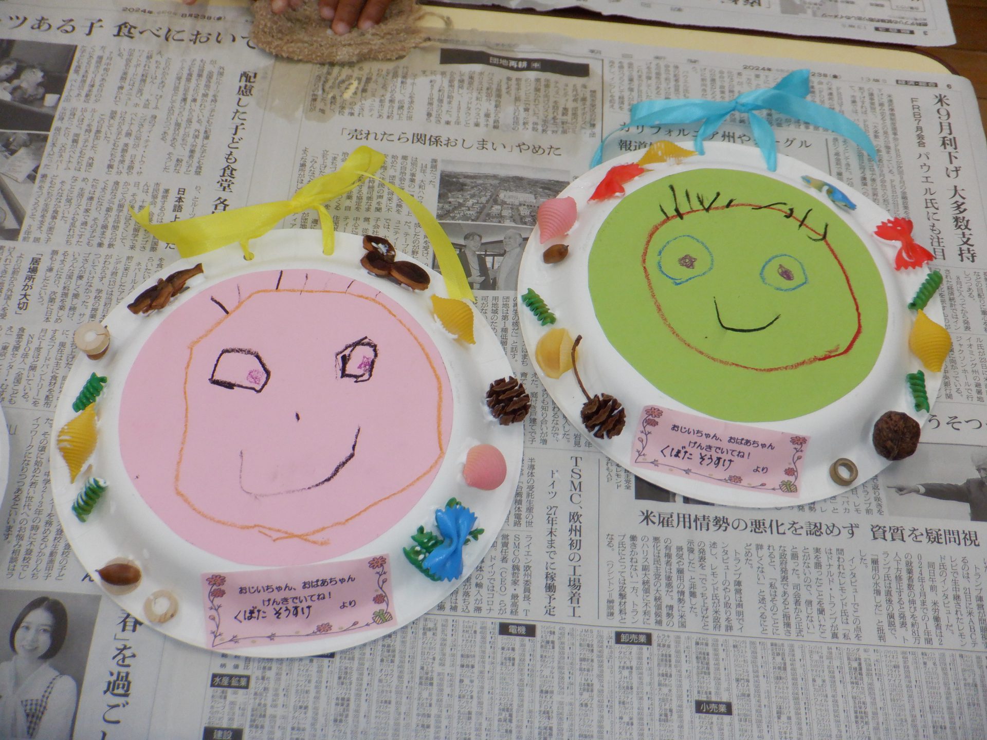 「おじいちゃん、おばあちゃんが来てくれる。」と楽しみにしながらプレゼントに貼る似顔絵を描きました。「喜んでくれるかなぁ・・・」