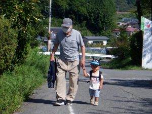 おじいちゃん、おばあちゃんと一緒に登園。「うれしいなぁ・・・」
