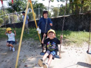 好きな遊びにも付き合ってもらってニコニコ楽しそうな子どもたち。