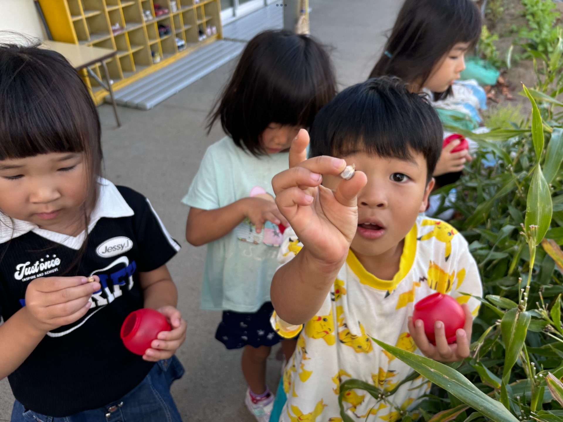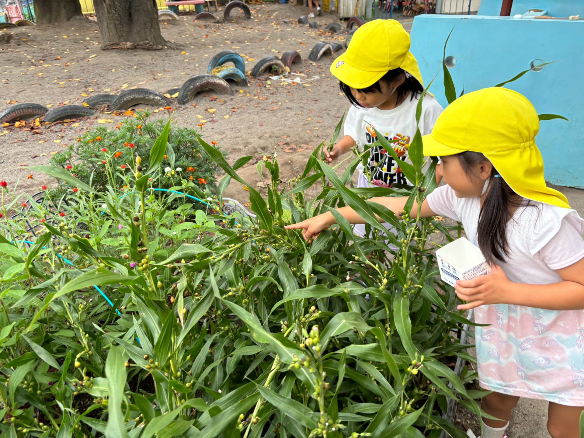 ・自由に摘んだり採ったりしてもいいよ、という草花を園庭にたくさん咲かせることで、夢中になって採取したり収集したりする姿がたくさん見られました。