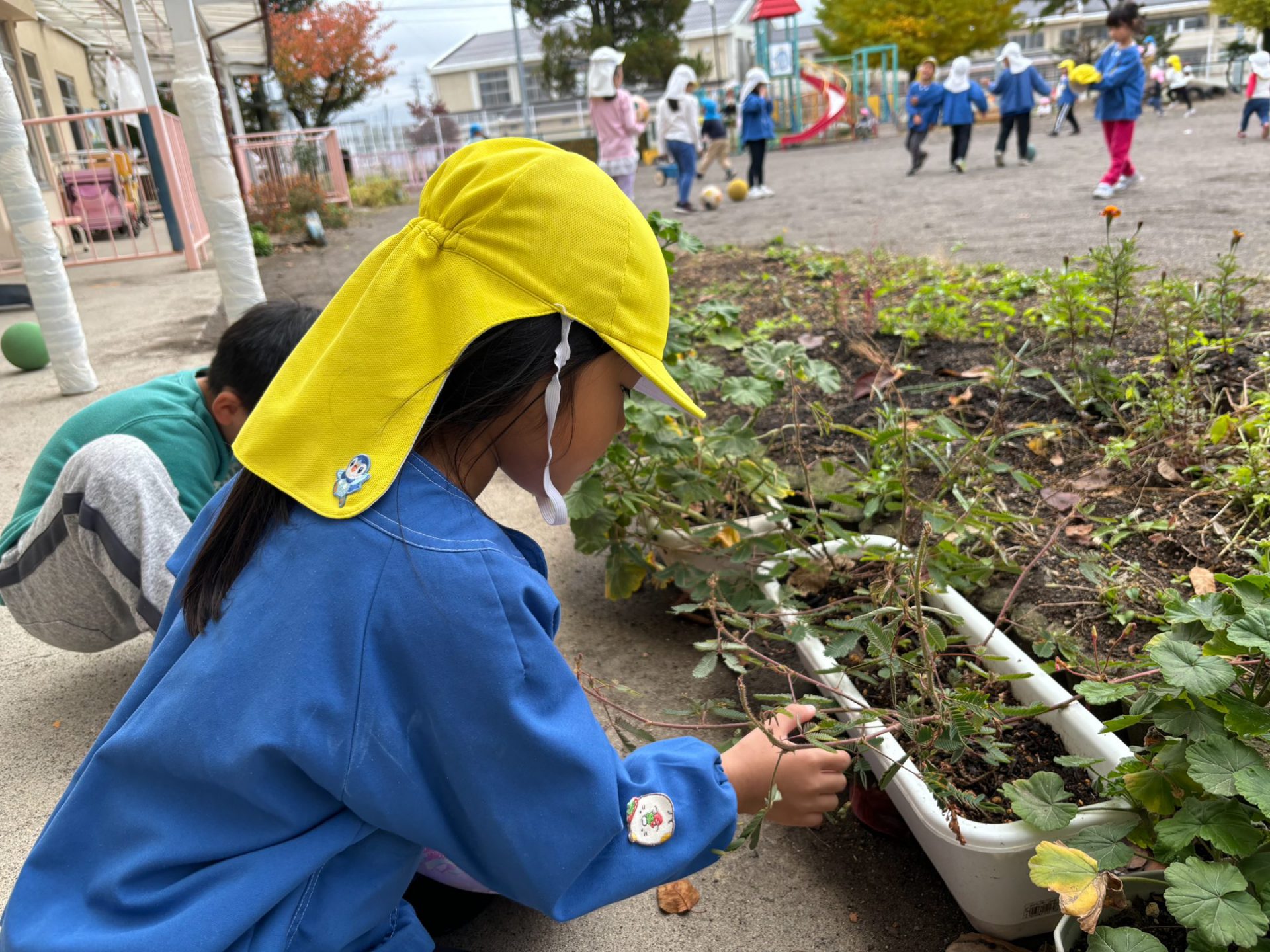 ・秋になり冬になり、花壇の草花も枯れ、手にとる子もほとんどいなくなりましたが、種が落ち、また来年園庭がたくさんの草花で溢れたらいいな、と思っています。