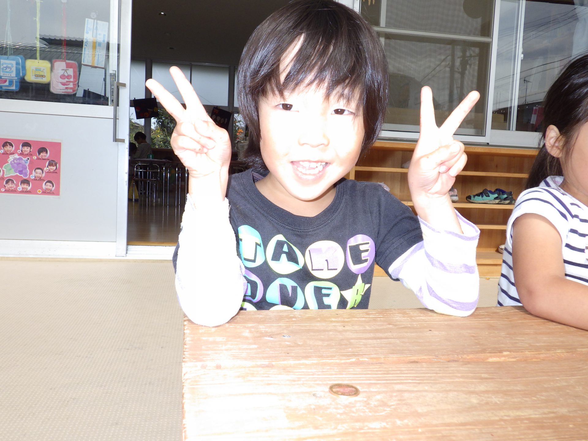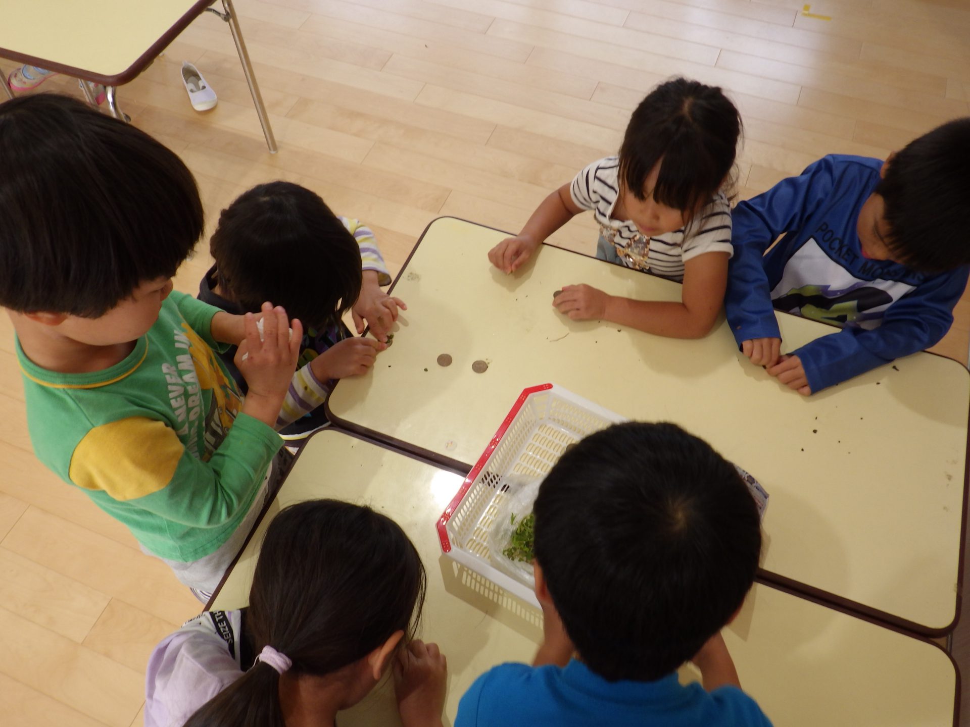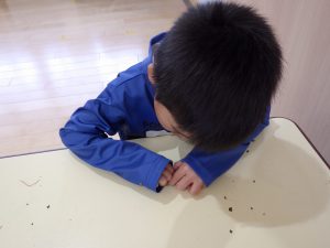 その日の給食後に実験を始めました。