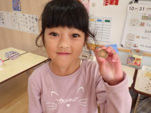 研修会で教えて頂いたことを子ども達に投げかけてみると、身近にあるカタバミという草の名前も知り、10円玉を磨いて色が変わっていく面白さを知り、夢中になって10円玉を磨きました。家に帰ってからも違う硬貨で試してみたりする子もいて、難しい科学変化のことは分からなくても、自然に触れ、自然に興味関心を広げていけるといいなと思います。