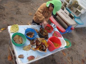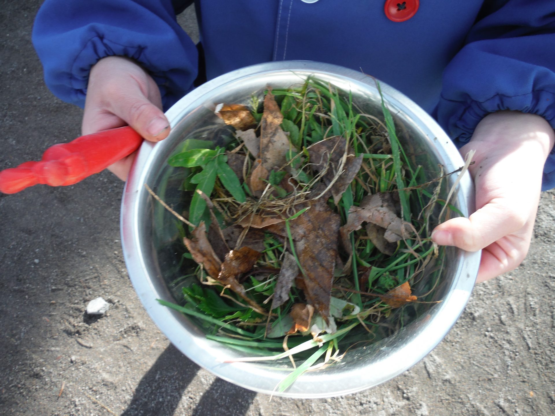 春は園庭の花壇で色水を作っていましたが、寒くなりお花が少なくなってきました。