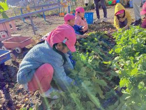 ・収穫しながら、大きさの違いや形の面白さに気付き、友達と会話をしながら楽しむことができた。