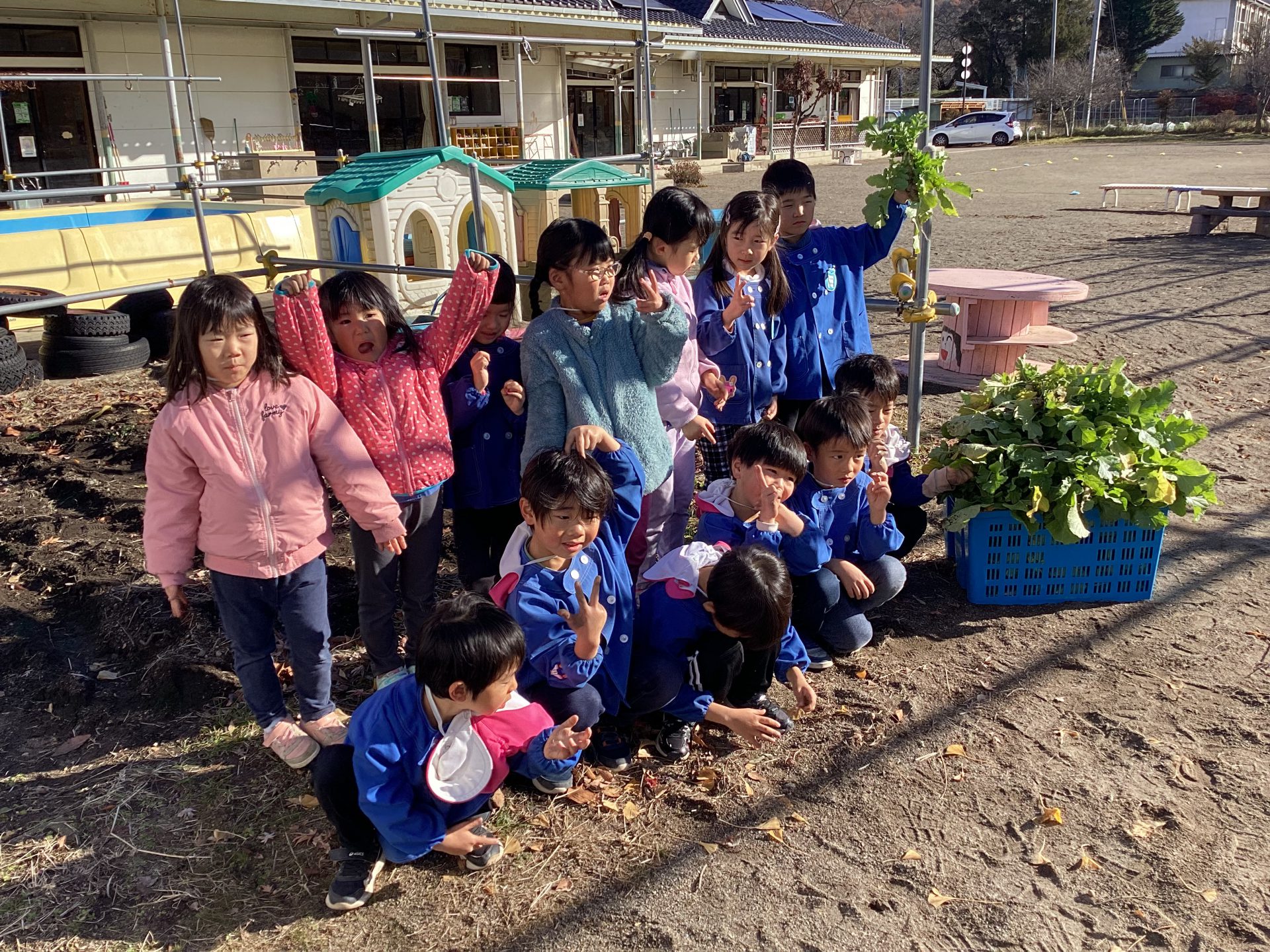 今年は10キロほどの大根の収穫で、みんなで記念写真を撮りました。