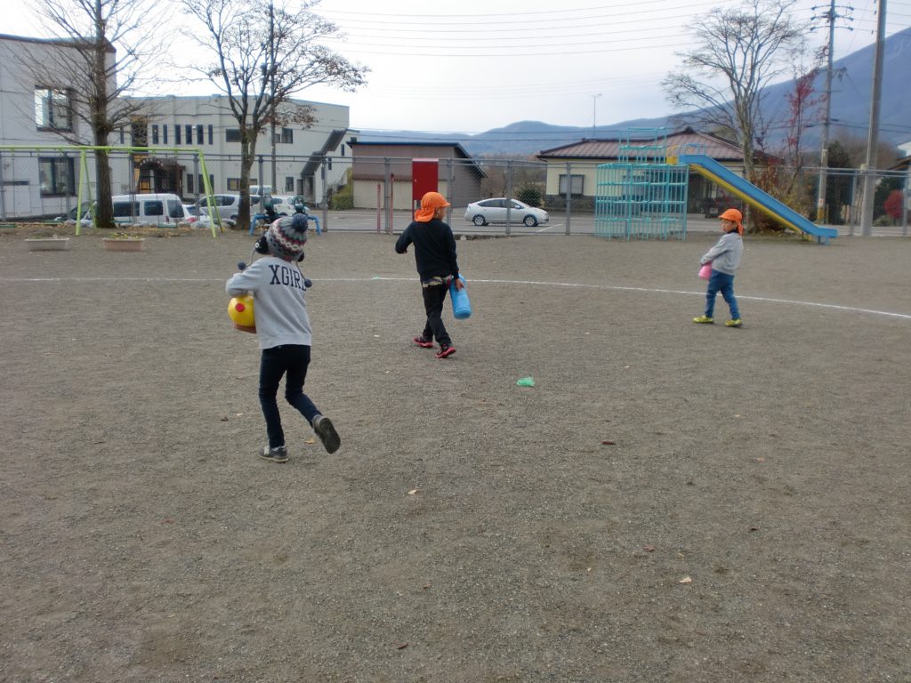 寒くなってくると、外へ出るのも遠のき気味になっていきますが、子ども達が寒くても元気に戸外へ出かけていく姿に、今日はこんなことをして遊びたいという思いがしっかりあるのだと感じました。