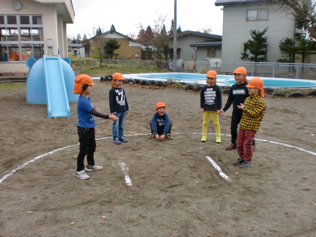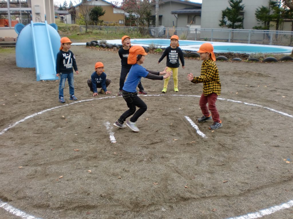 その子に着いて行くと、なんとそこでは相撲ごっこが始まっていました。