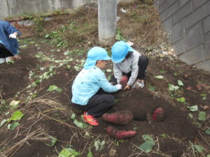 普段経験することのない軍手を付けて、土に触れ大きなサツマイモを収穫できた!という喜びを感じることができたと思います。