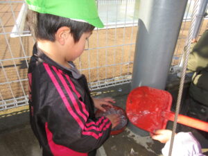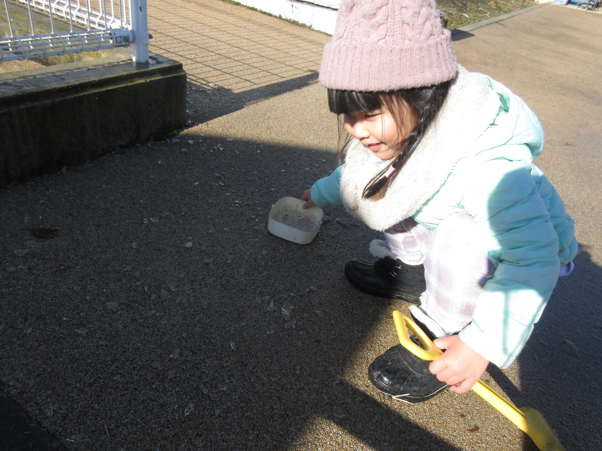 冬になればなるほど元気に外で遊ぶ子ども達。氷ができていたことに嬉しさを感じ、氷を手に入れたい子ども達。どうやったら手が届くのか試行錯誤しながら挑戦する子ども達。挑戦する心、あきらめない心を持っている子がたくさんいました。
