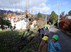 「りんごもうあんまりないね」「木にも葉っぱがないよ!」「柿がシワシワだ~」