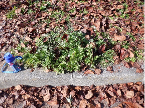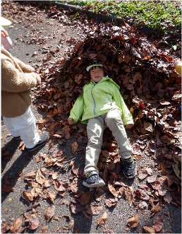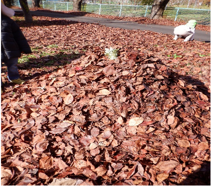 目的地は近くのテニスコート。春は桜、夏は草花や虫がたくさん。今日は一面、落ち葉です。
