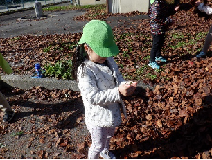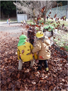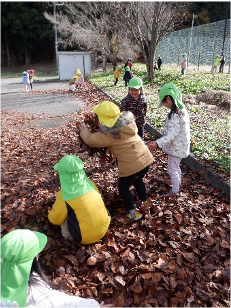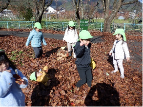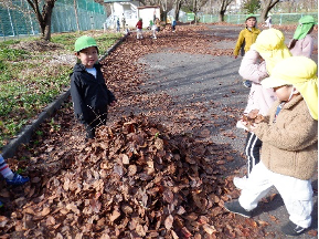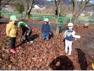 前に来たときはこんなになかったよ!」「焼き芋の時、落ち葉足りなかったもんね」「このぐらいあればよかったのに…」