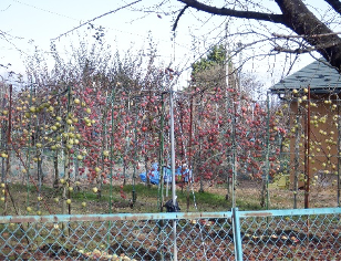 「あそこにはまだりんごあるね。」「赤いのはフジかな?」
