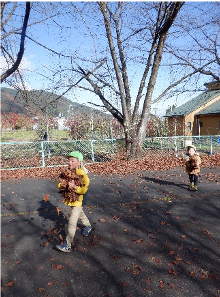 三郷の小倉地区は、山も近く自然に囲まれ地区の特産であるりんご畑がすぐ身近にあります。散歩に出れば豊かな自然や四季の変化、りんごの成長などを、色や香り、音、そして触れることで五感を通して感じることができます。様々な経験から、なぜ、どうしての疑問や不思議に思ったり、確かめたりと興味や好奇心、探求心を育んでいって欲しいと思います。