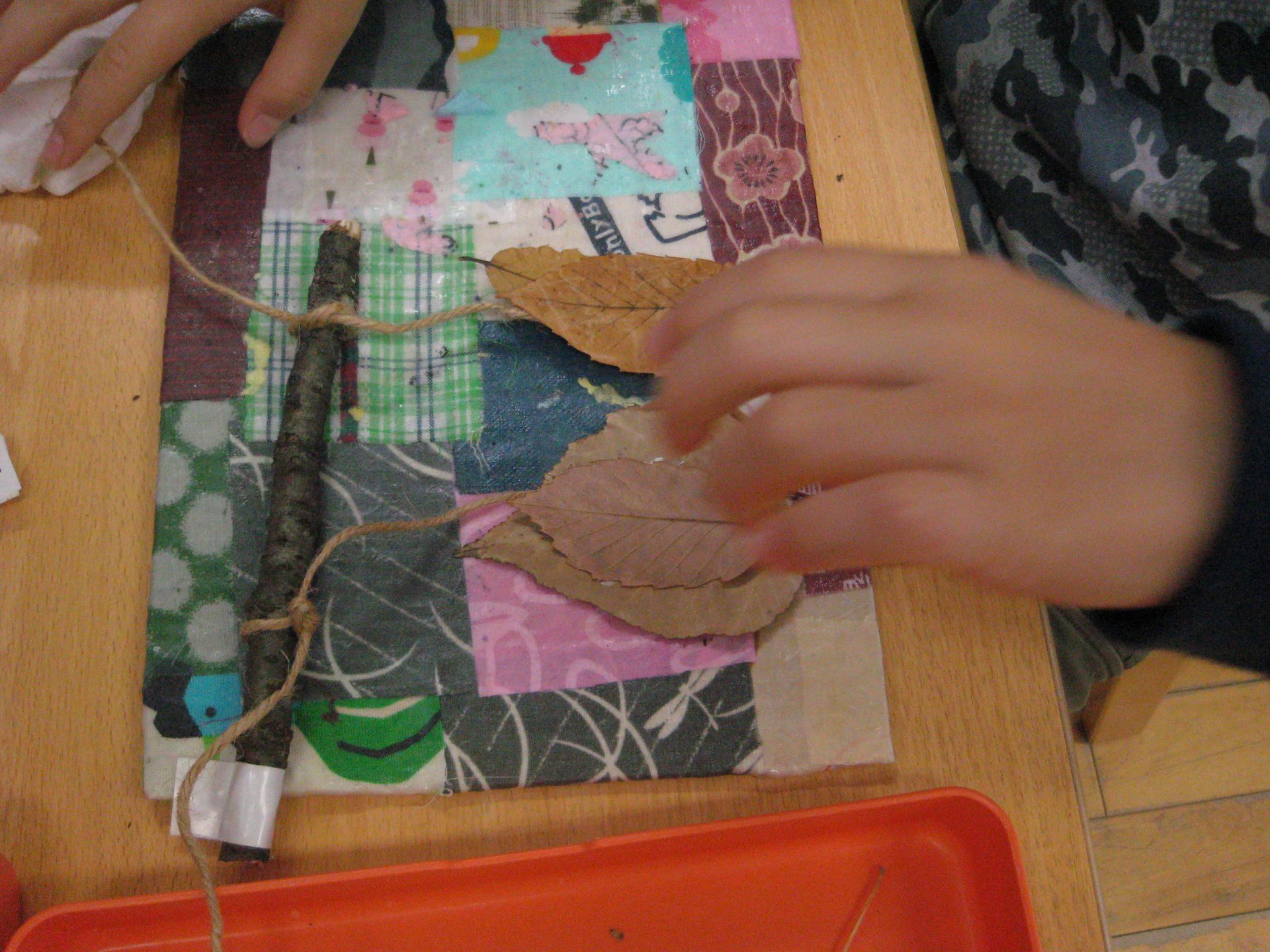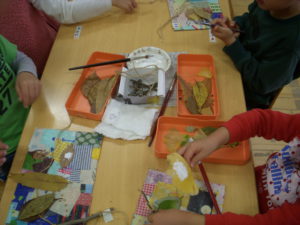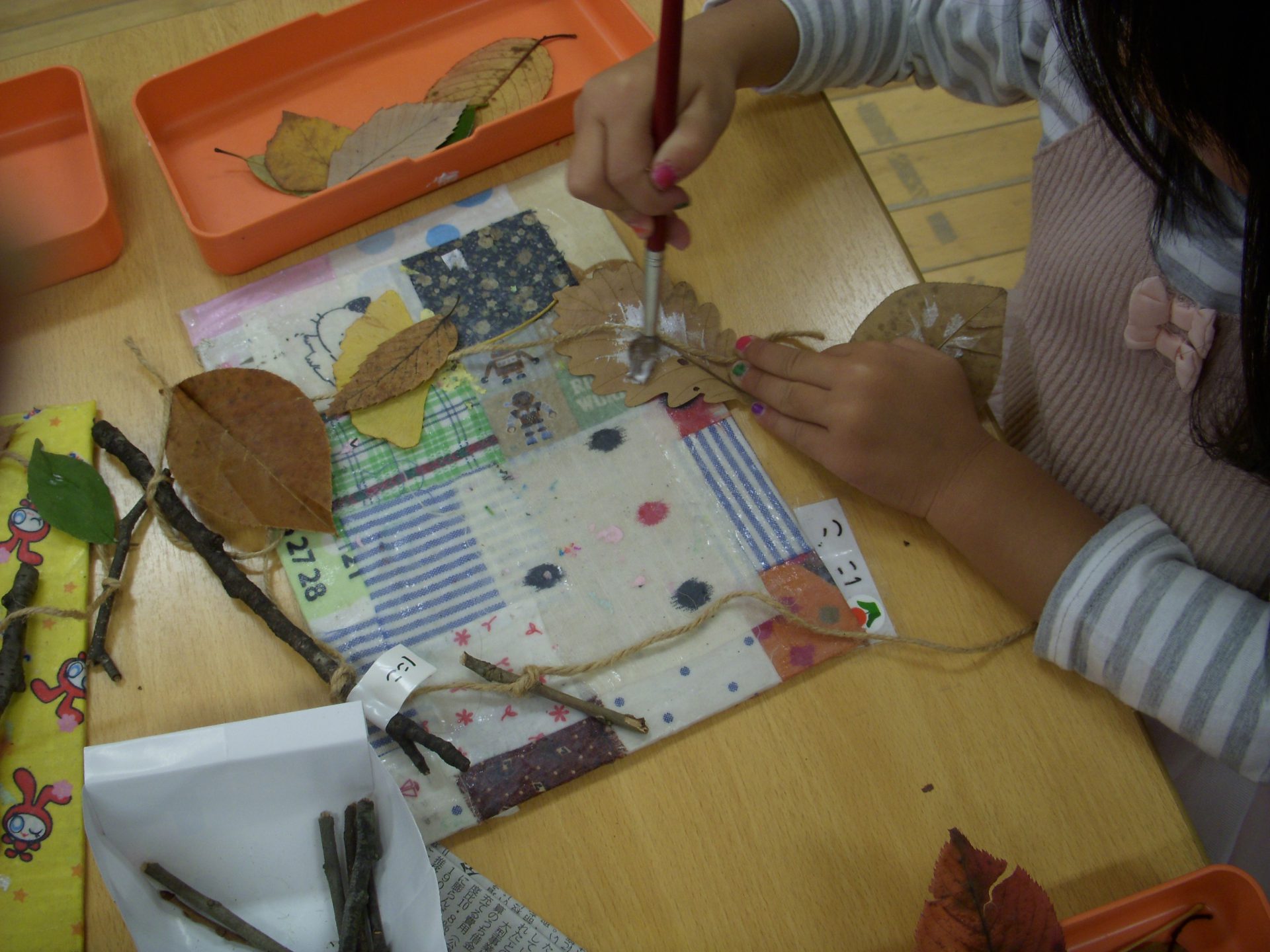 「どの落葉にしようかな?」「この葉っぱと組み合わせよう!」大切に扱う姿が見られます。