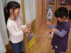 「これいいね。」「これは同じだね。」と友だちと共感しあい完成を喜んでいます。お互いの作品を認め合うことのできる子ども達です。