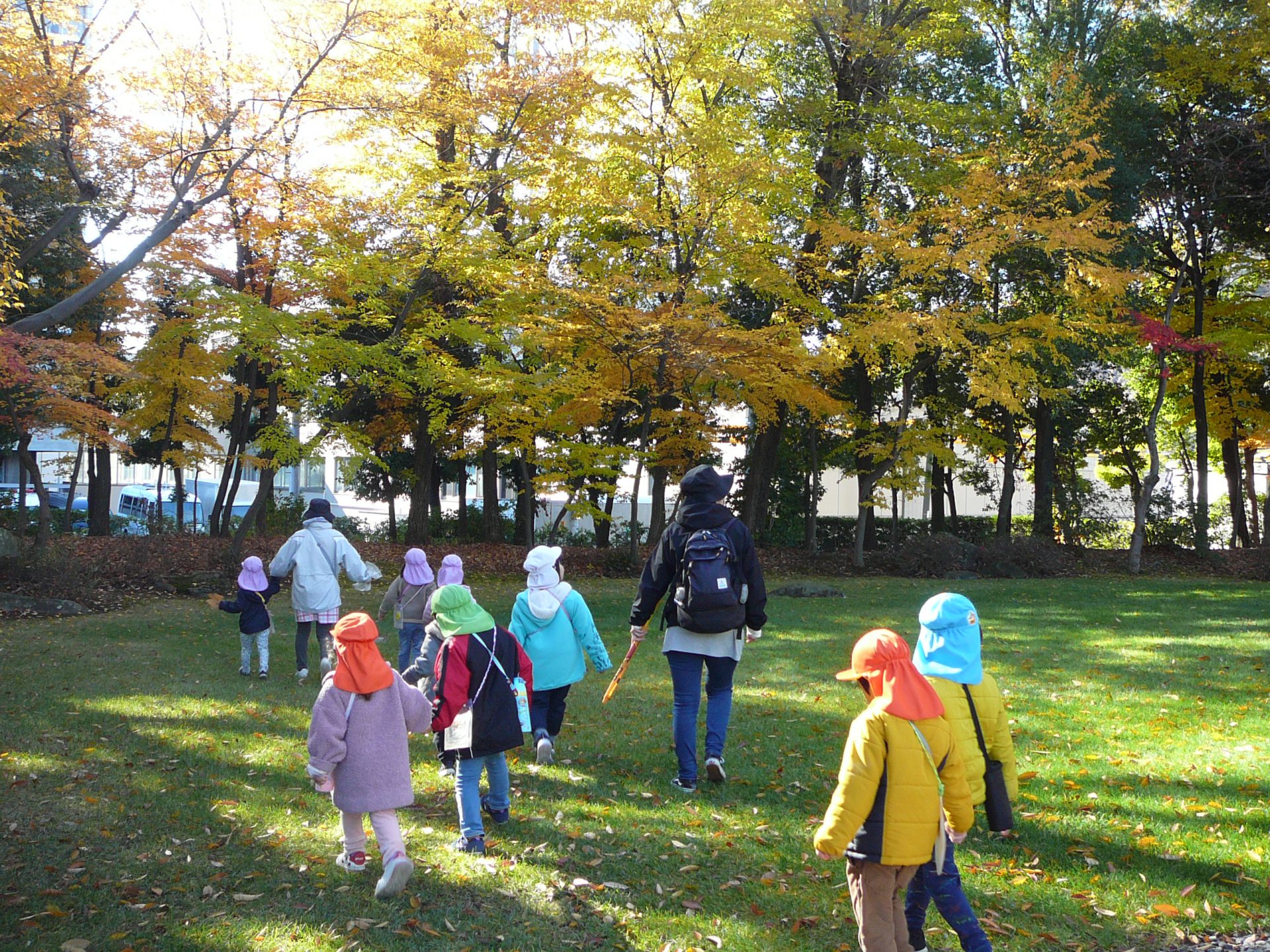 「こっちの木は、葉っぱがたくさんあるね」「緑の葉っぱの木もある」同じ木でもどうして違うんだろう・・・自然って不思議ですね。