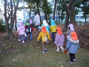 目的地に着きました。今日は自然物がたくさんある場所にやってきました。ある子がつぶやきました「森みたい・・・」