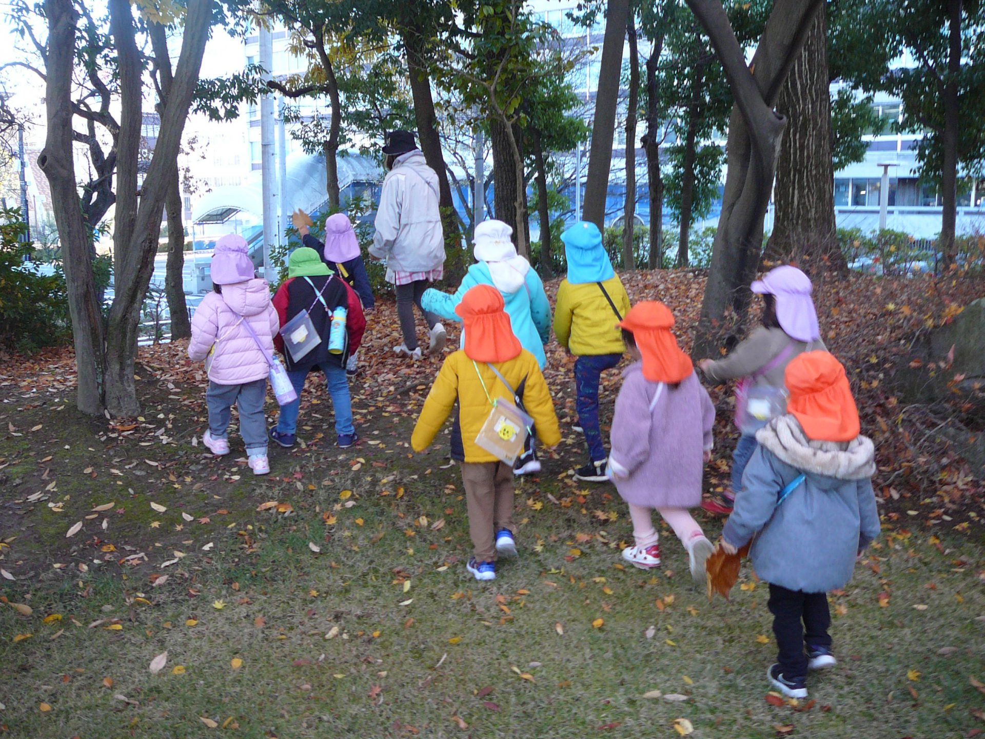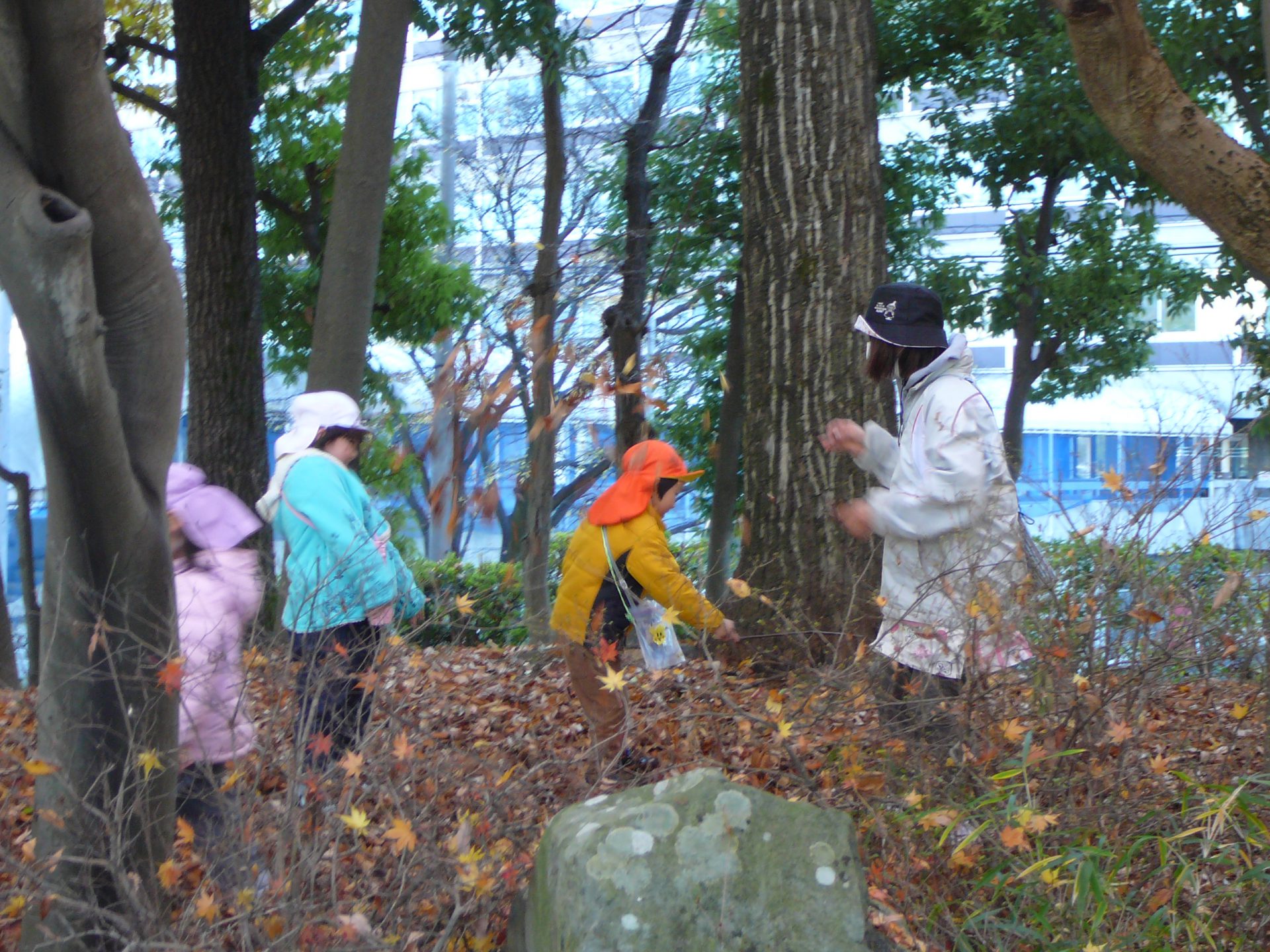 「木に葉っぱ一枚もない!」「全部落っちゃったんだ!」だから落ち葉がたくさんあったんだね。でも・・