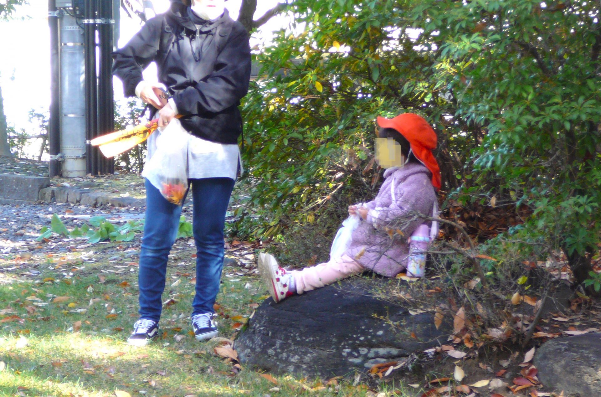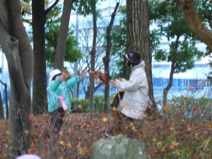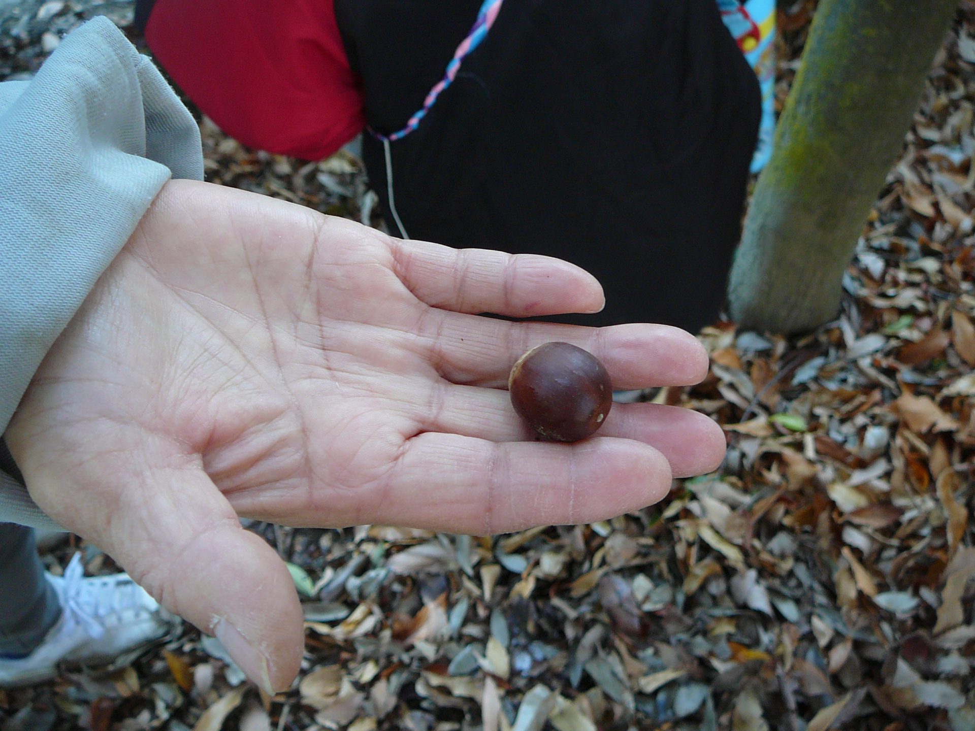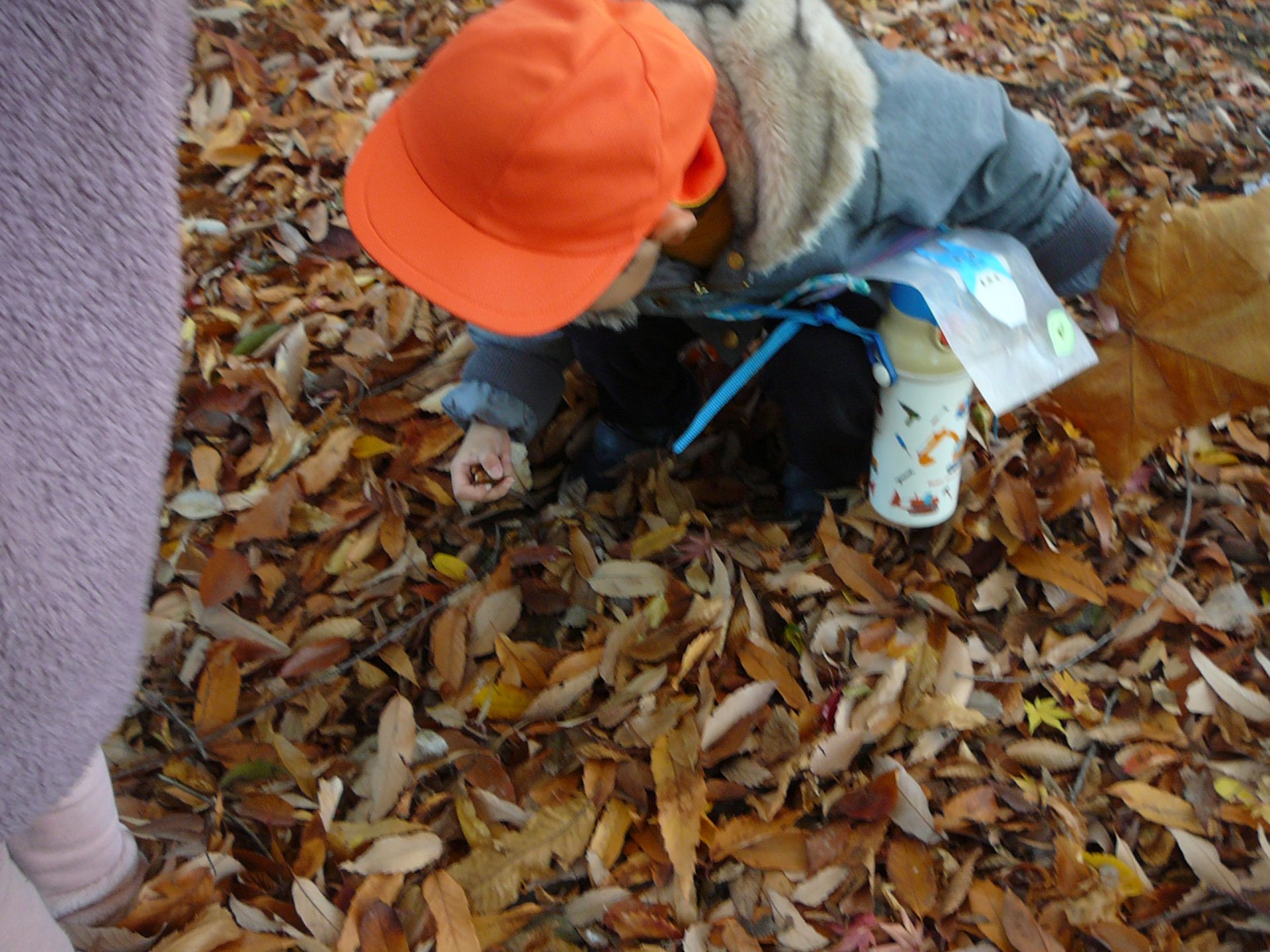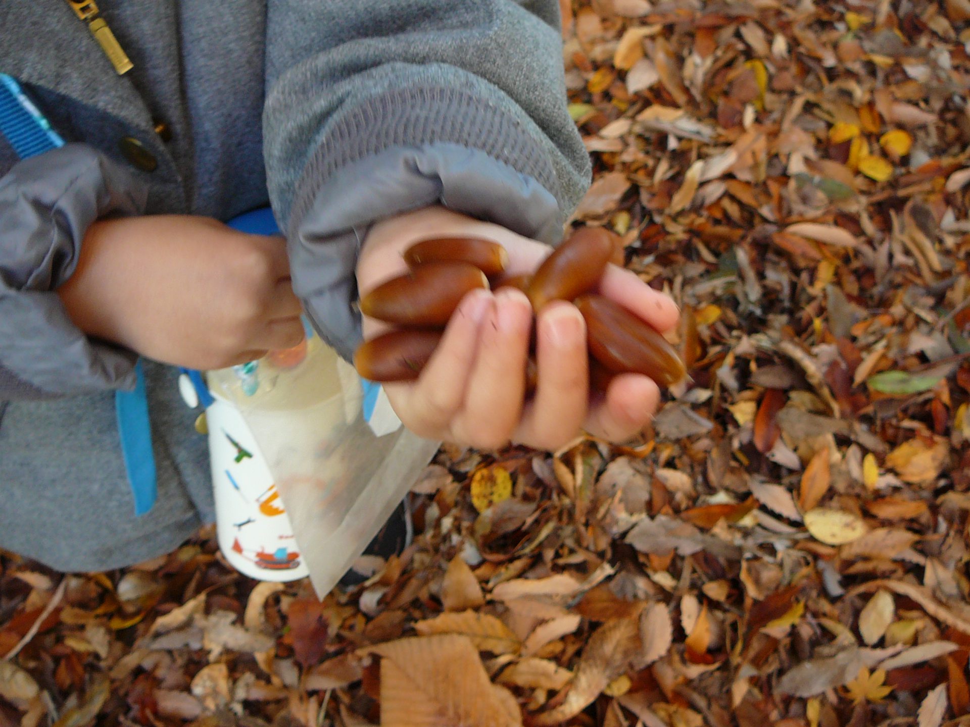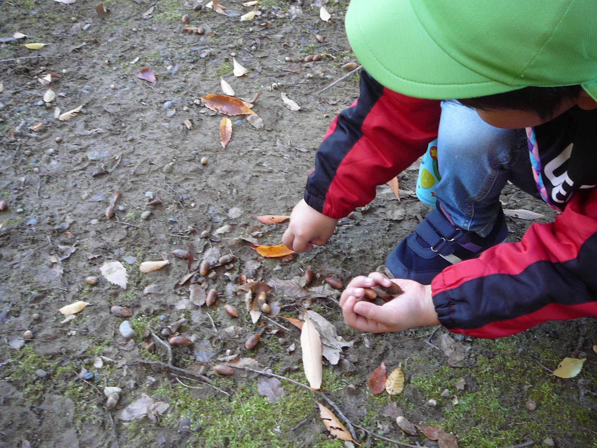 「どんぐりあった!」「見て、ここにもどんぐりあるよ!」あちこちに落ちています。