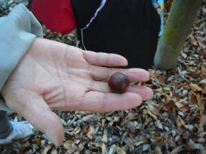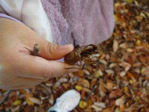 細長いどんぐり、大きくて丸いどんぐり、いろんな種類がありました。みんなで探していると・・「せみいた!」えっ?この冬時期に、せみ?