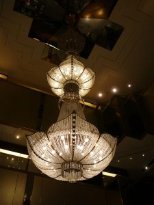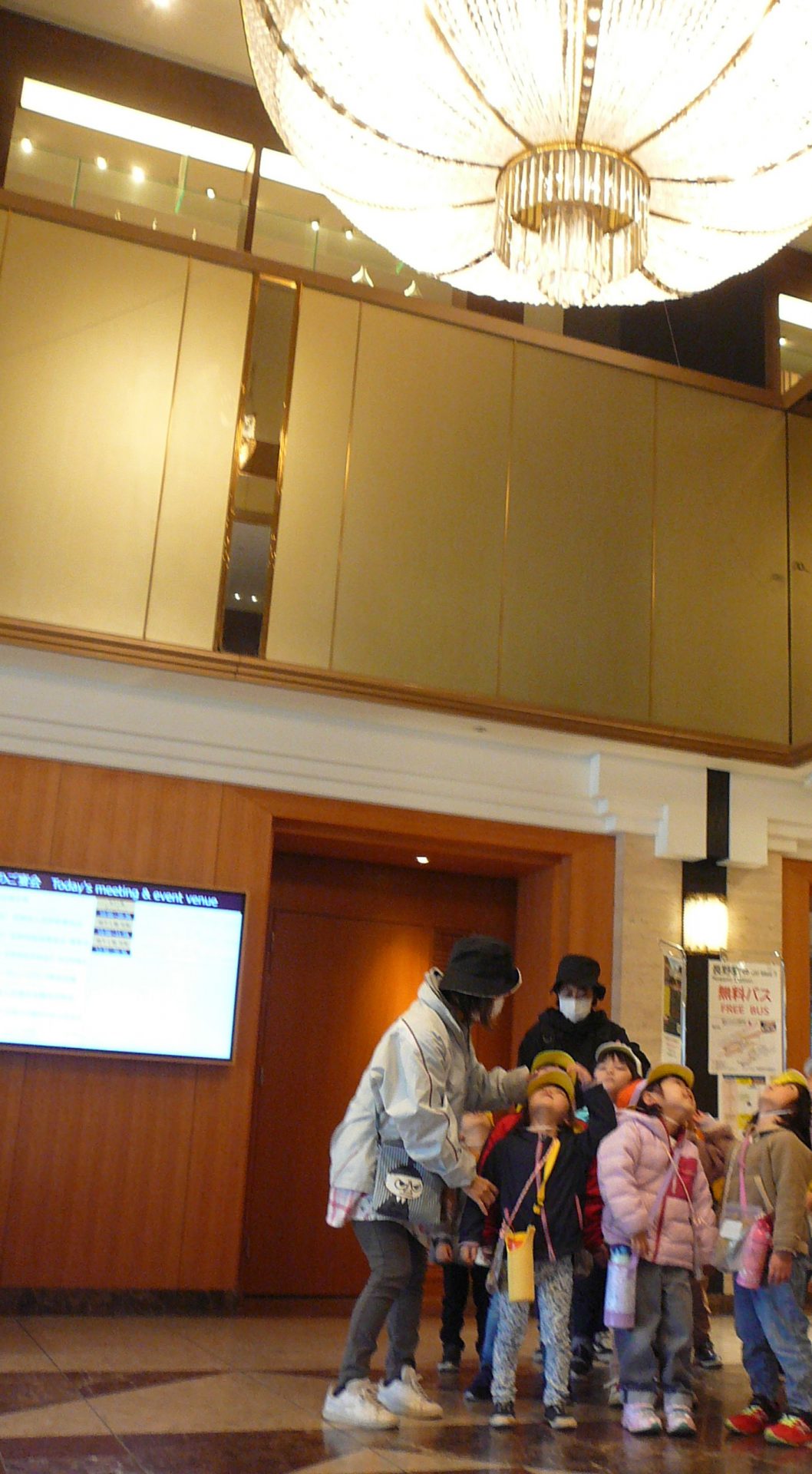 大きなシャンデリアが光っていました。「きれい~」とみんなで見上げていました。