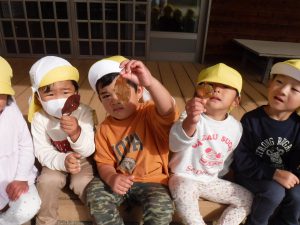 身近な自然に親しみながら、季節の移り変わりに興味を持ち、その時期ならではのあそびの楽しさをたくさん経験していってほしいと思います。これからもたくさんの自然に触れる機会をつくり、子どもたちと楽しんでいけたらと思います。