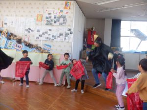 オープニングは年長さんのキレキレ牛ダンス「きみをよぶのはオレ」を踊りました。園長先生も牛になって登場です。