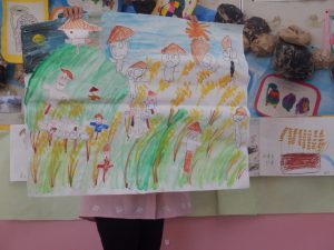 ・子どもたちと発表の相談をする中で一年間を振り返ったことで、畑活動や地域の方にお世話になったことを思い返すことができた、イベントをするだけ、楽しいだけではなく、子どもたちの中にも野菜やお米を作ることの大変さや地域の方にたくさんお世話になっていることに気づき、収穫祭を行うことの意味を感じられたのではないかと思う。