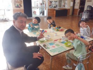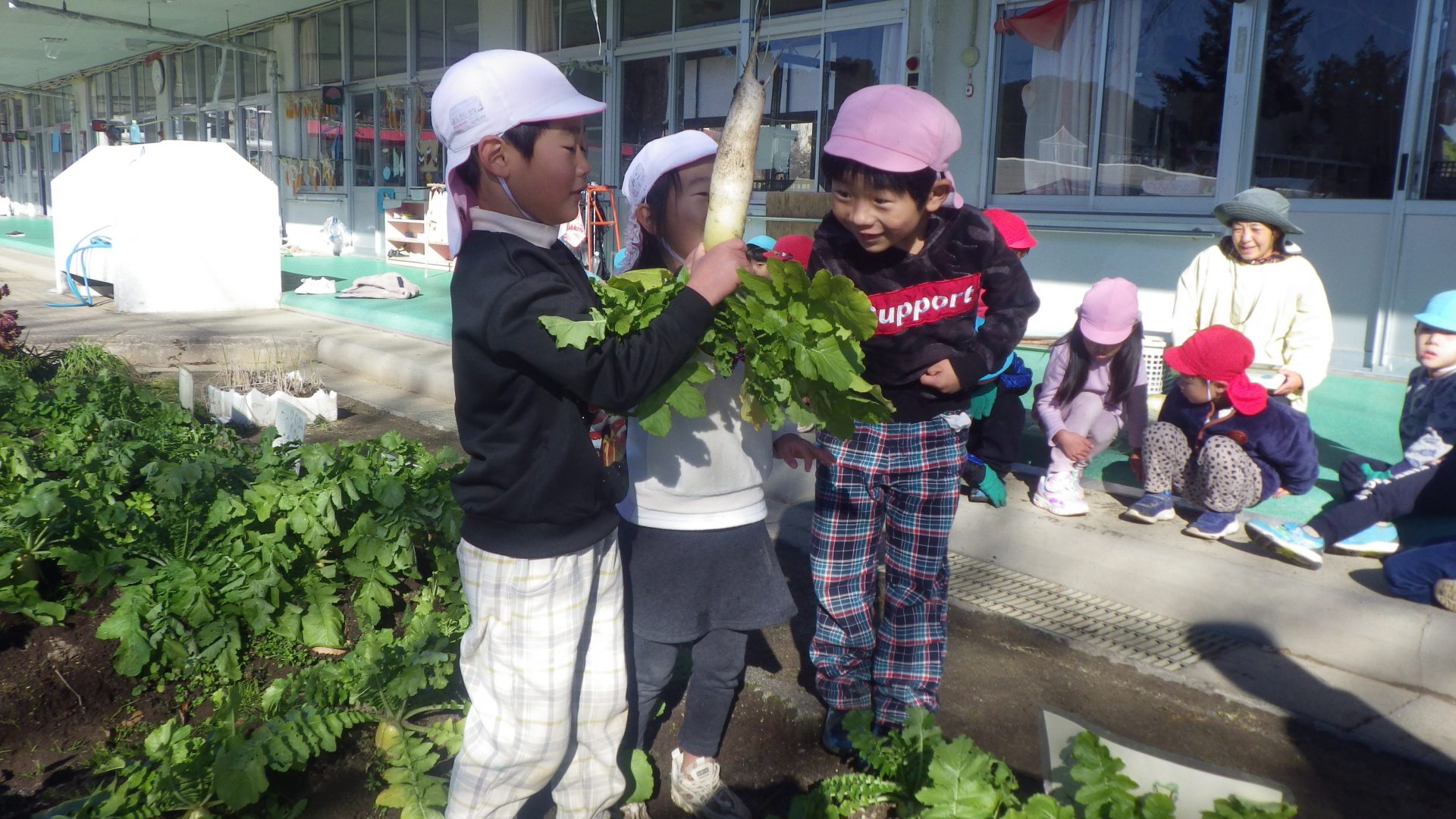 一年間畑で育てた物や地域の方にお世話になった事、地域の方々と共にしたいろいろな事を思い出しながら、一年間の感謝を込めて皆でお祝いをしました。