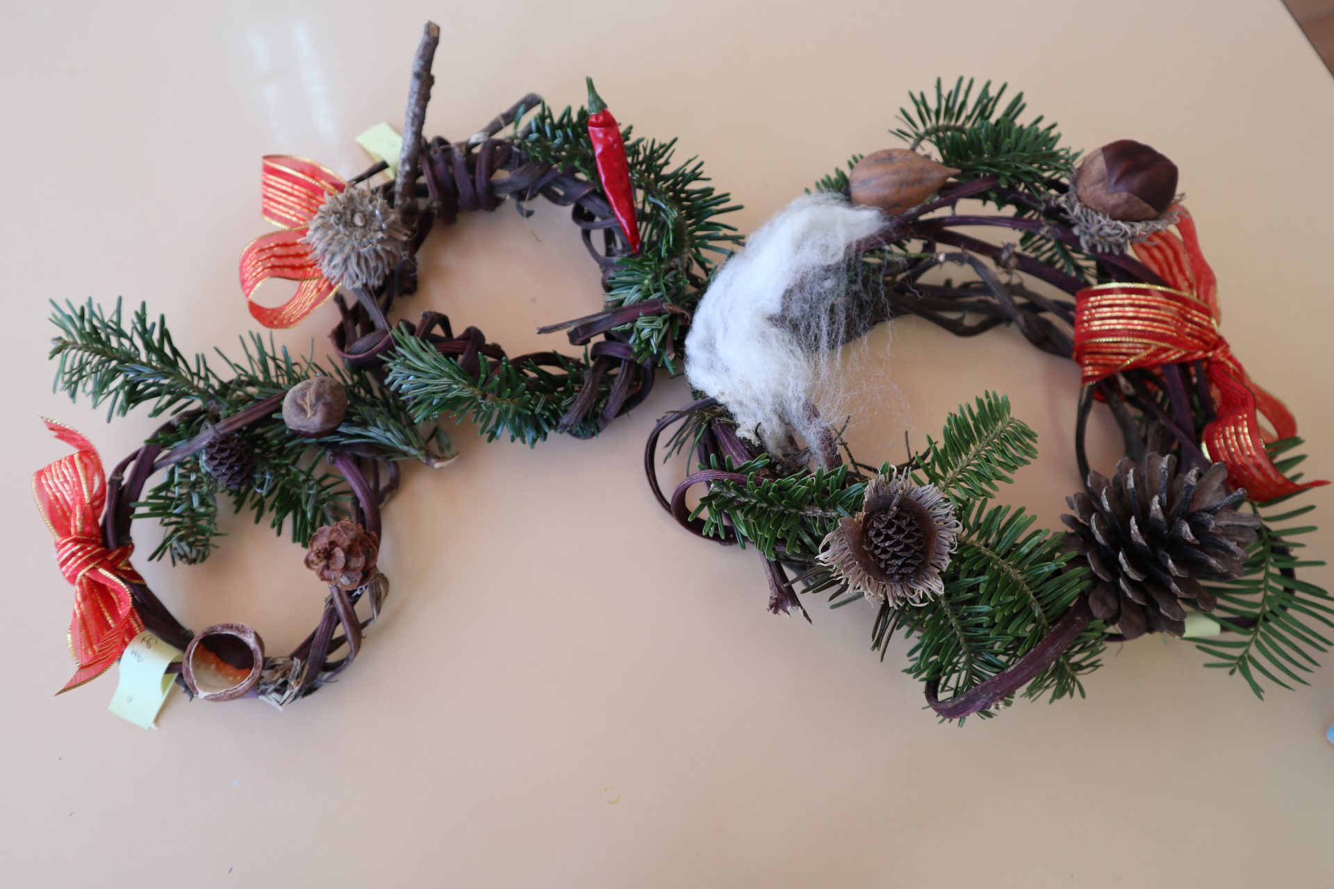 木の実や葉っぱを使い、一つしかないリースが出来ました。