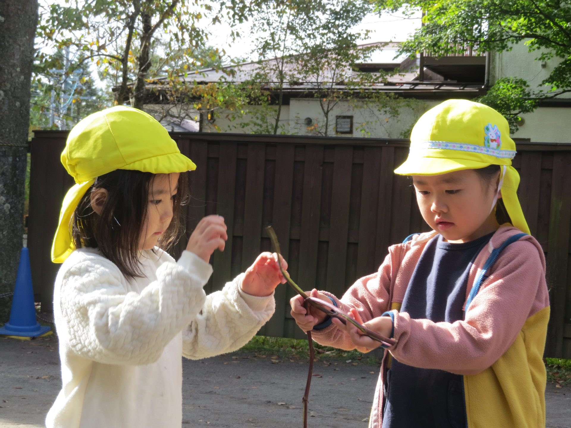 自然物を使用して製作をする中で、素材の性質を知り工夫する姿がありました。
