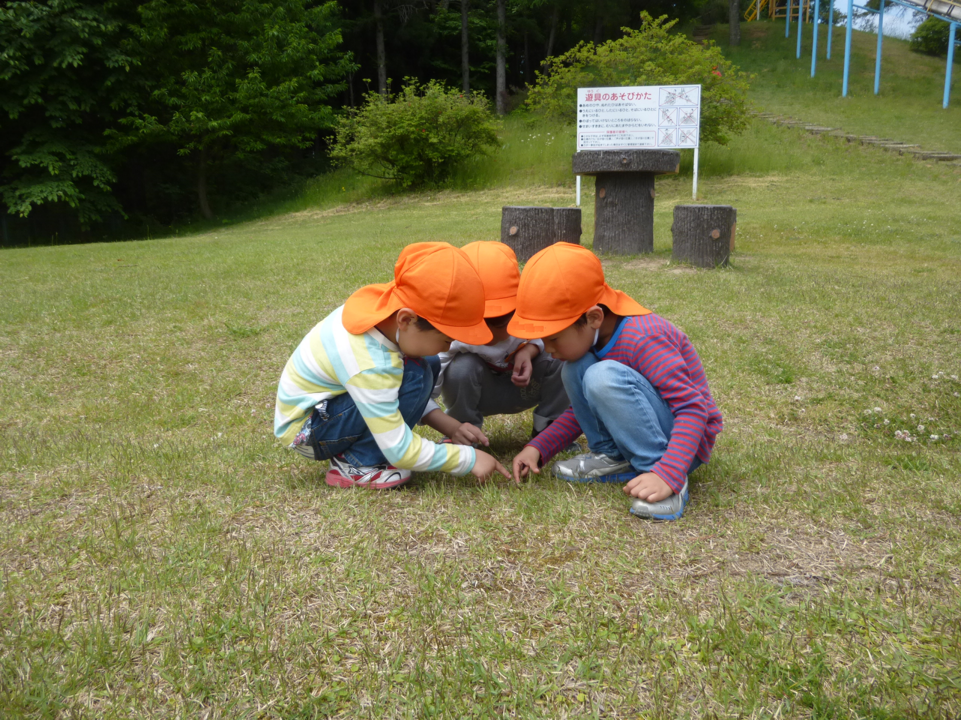 小さな生き物と触れ合ったり、遊具でたくさん体を動かしながら遊んだりと