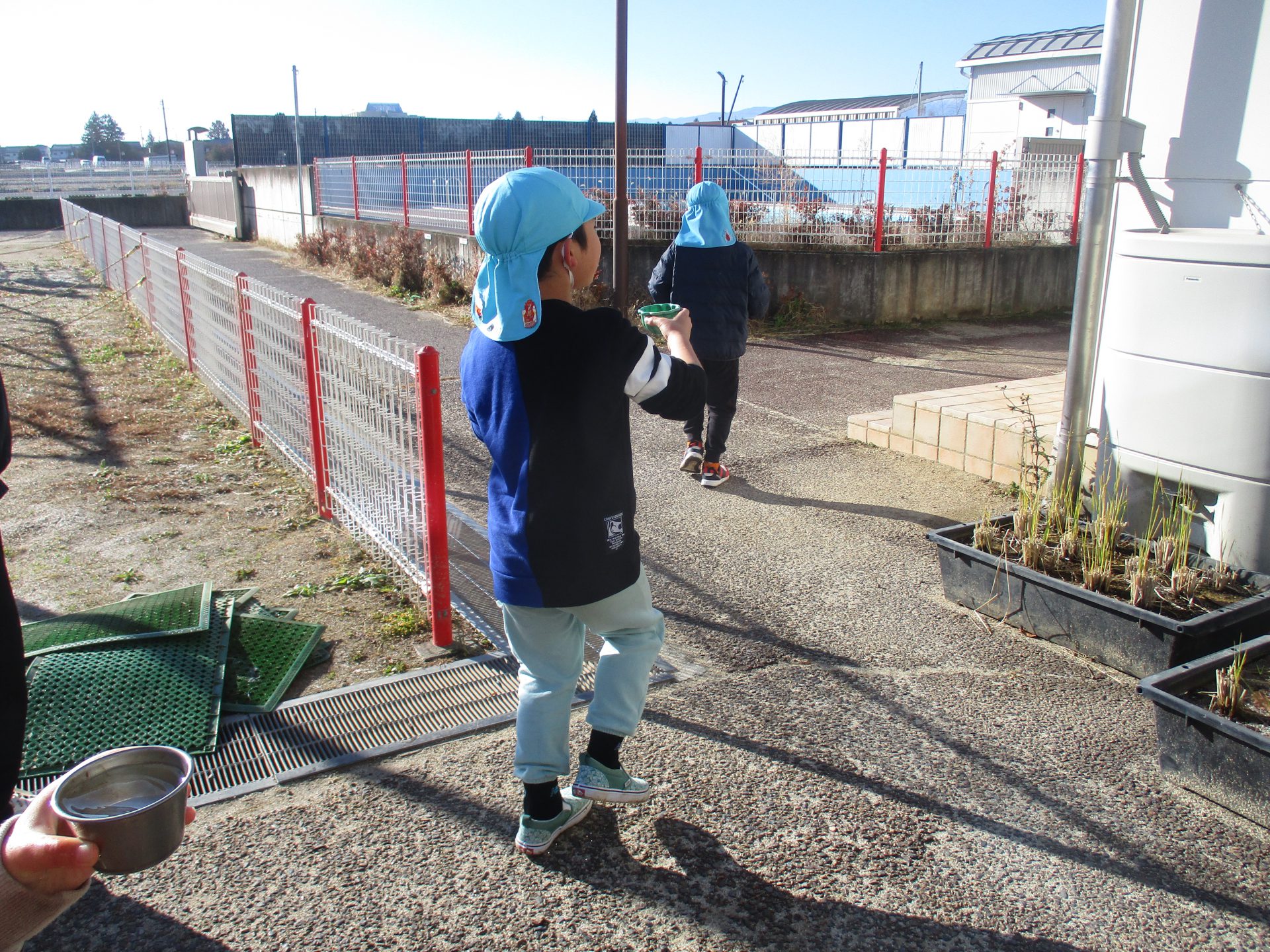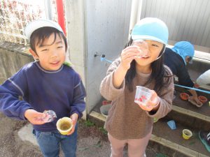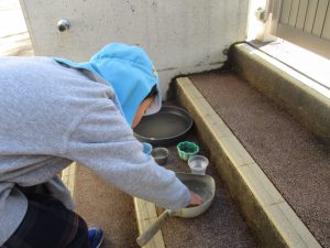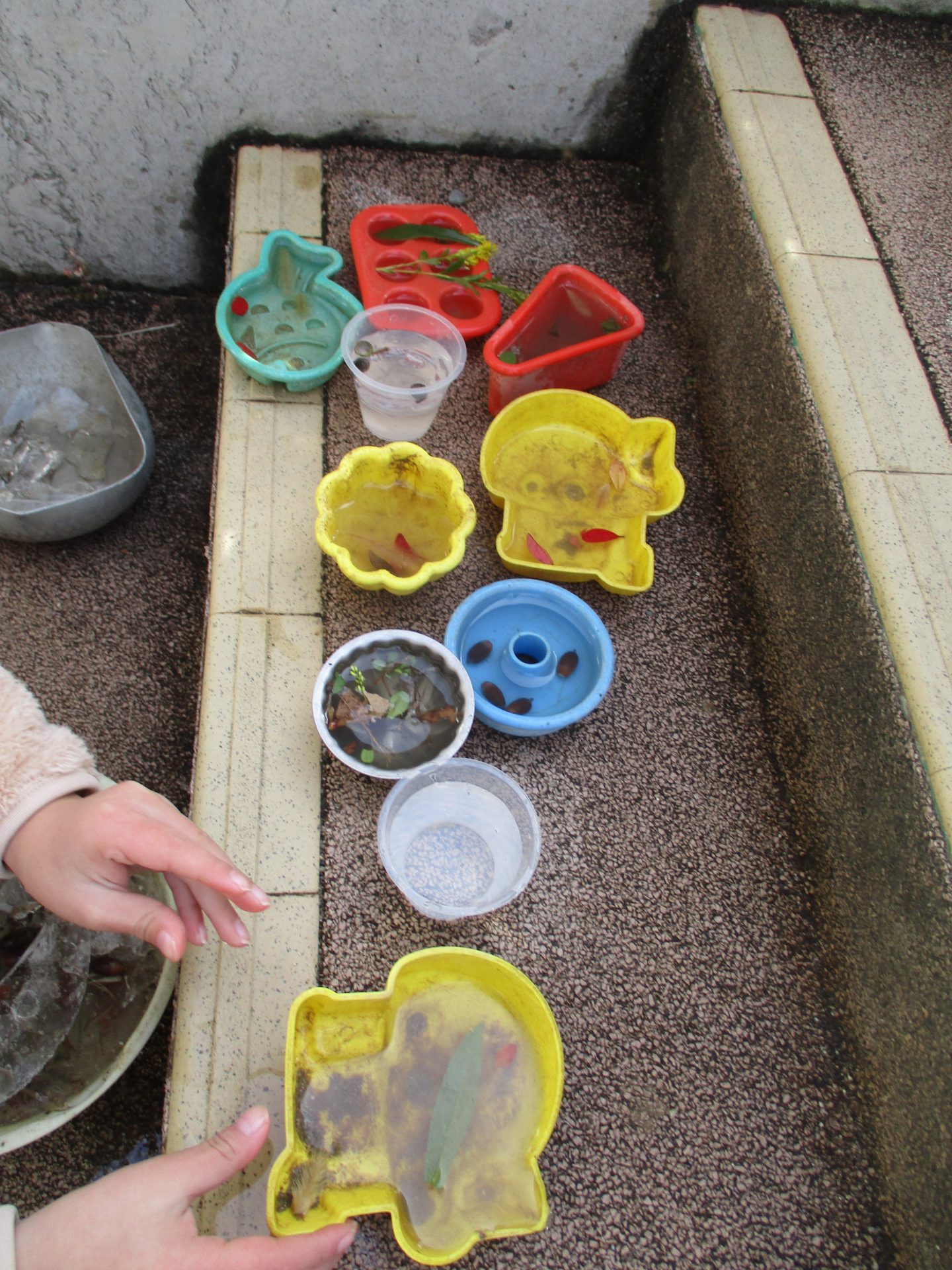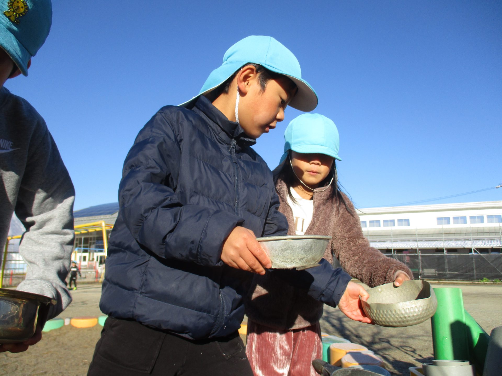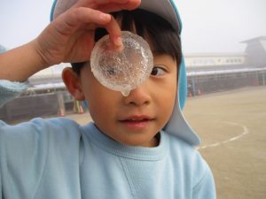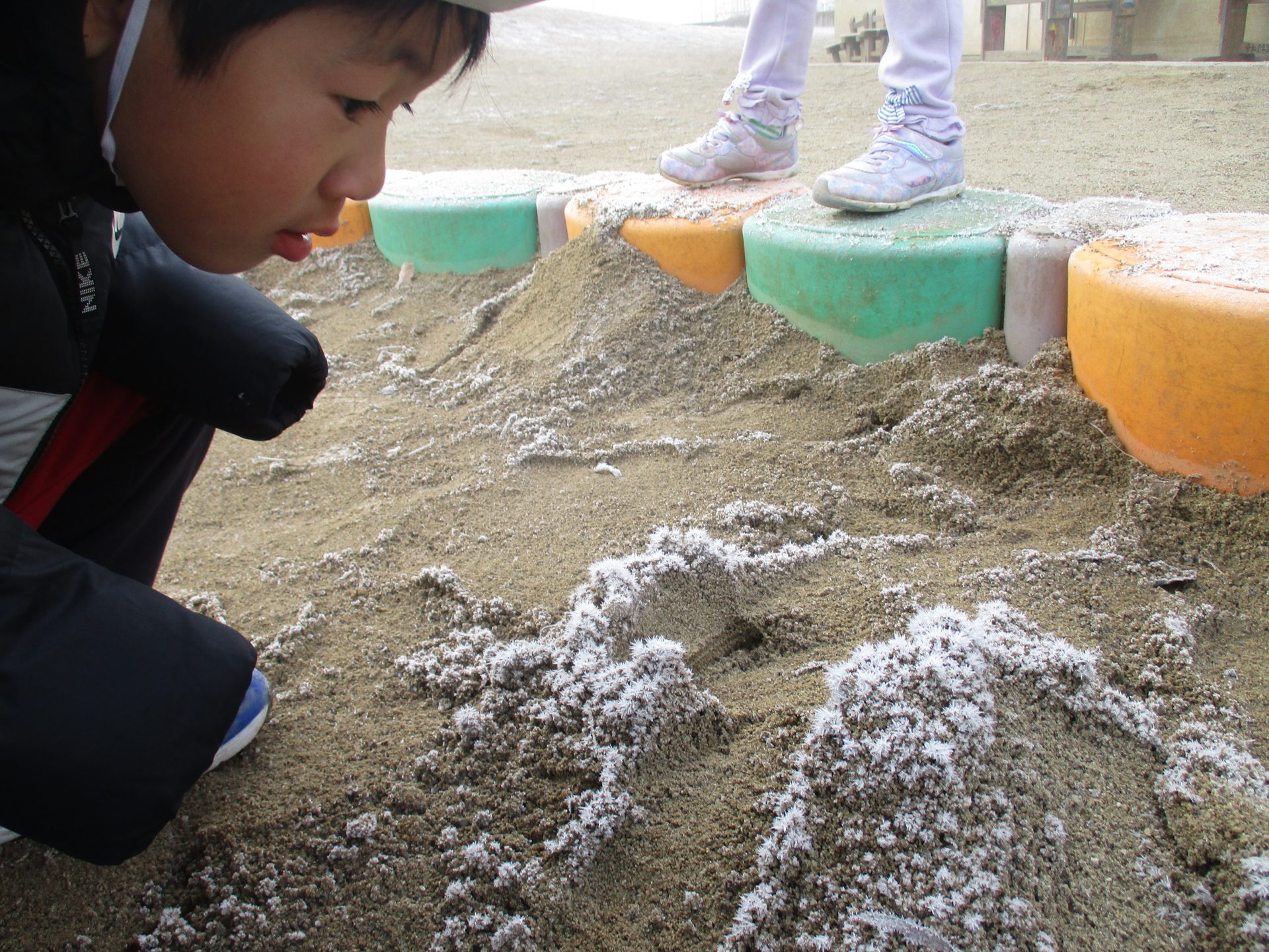 あたたかい部屋で過ごしたくなりますが、太陽が隠れている朝が子どもたちのお楽しみの時間です!氷や霜、雪など冬のお宝を沢山見つけることができます。寒さに負けず冬ならではの発見や遊びを楽しんでいきたいと思います!