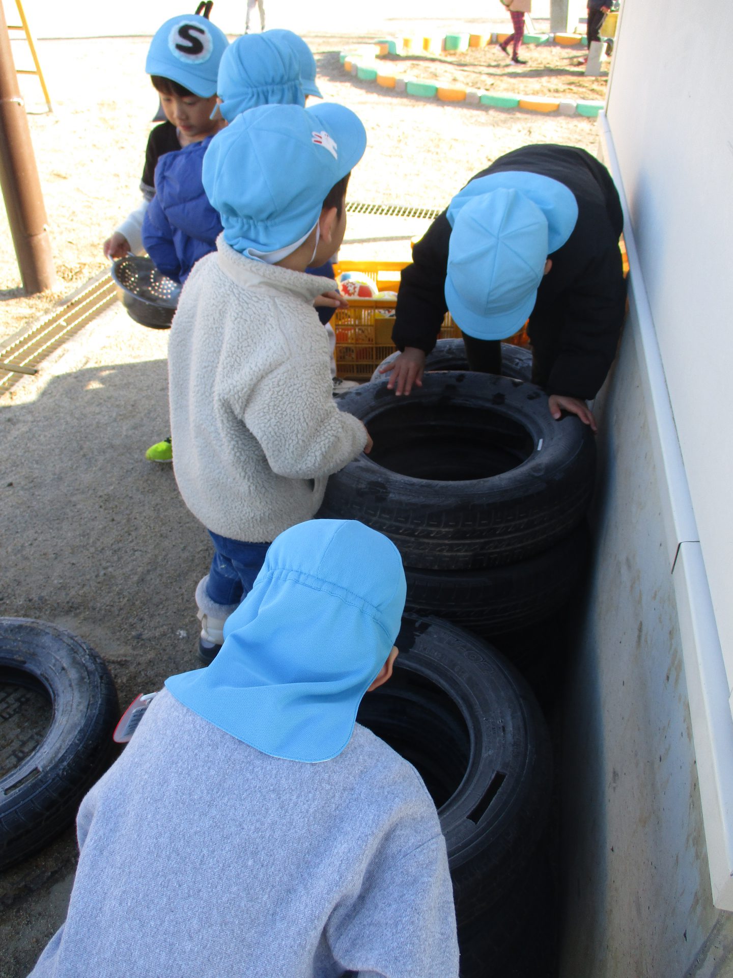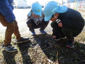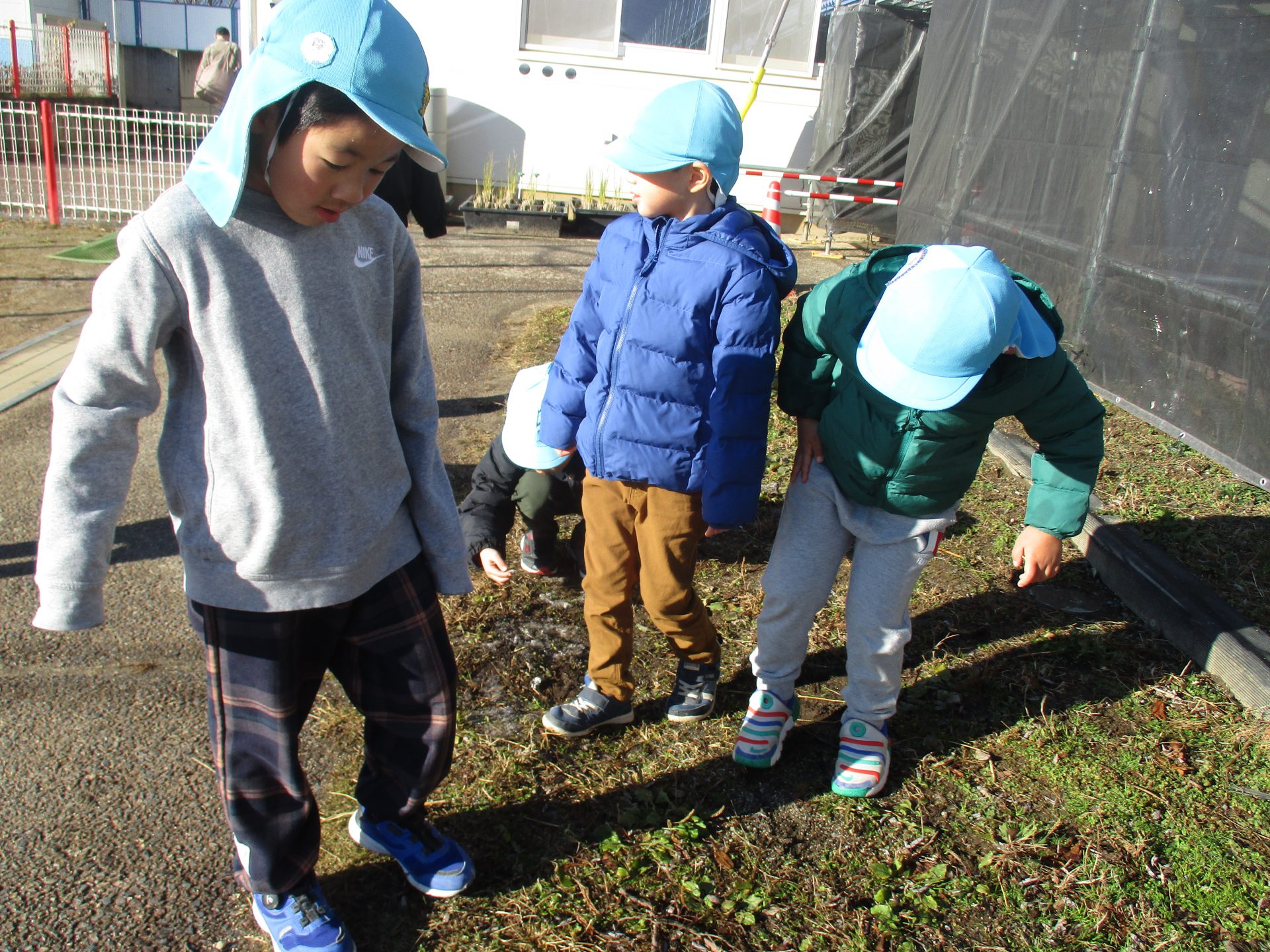 氷の他にも冬の園庭にはおもしろい発見が沢山!