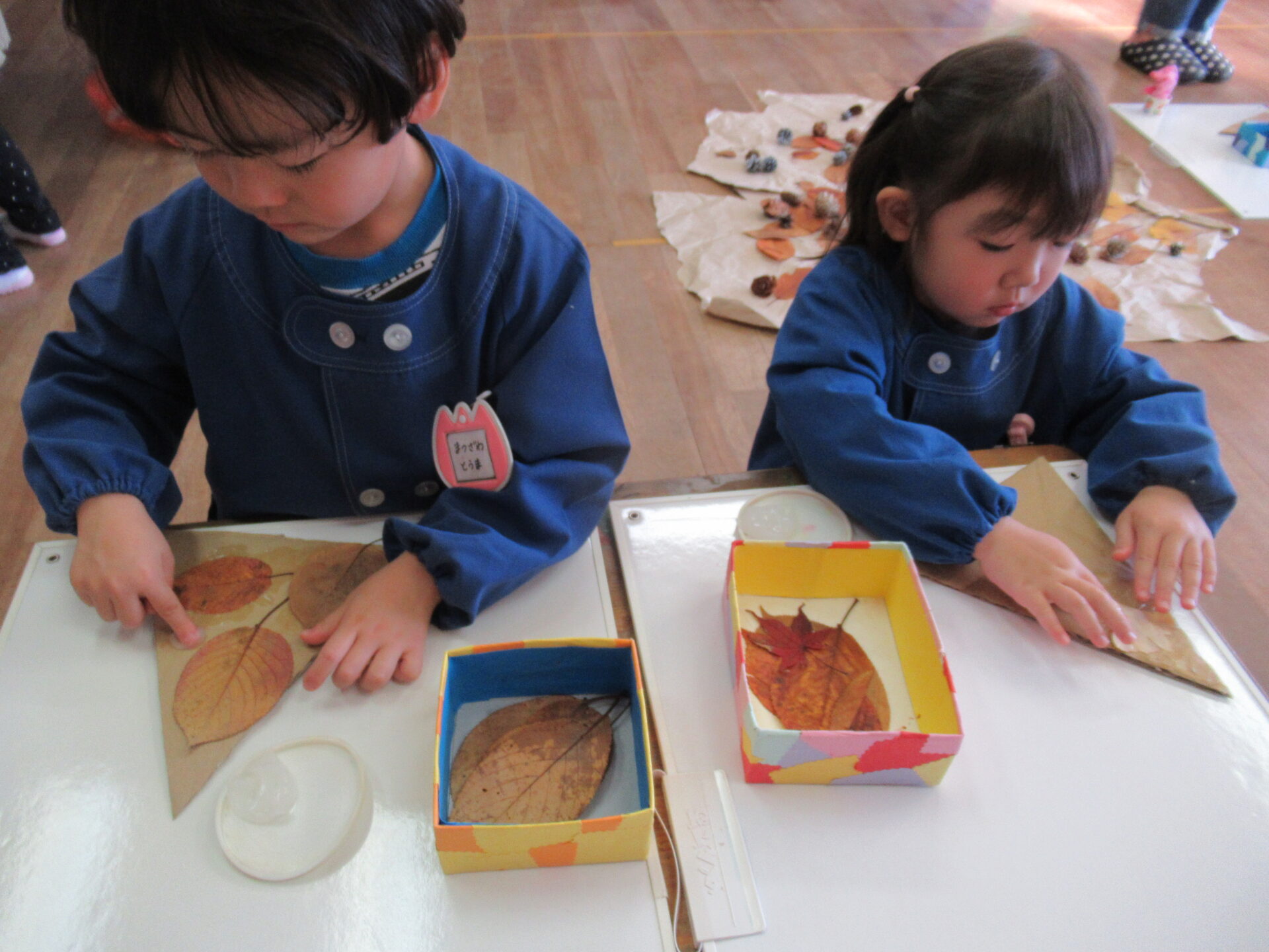 また自分たちで集めた葉っぱを使ったからこそ制作への意識も高まり楽しんでいる様子がありました。