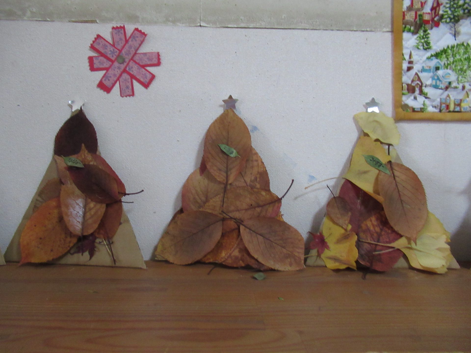 ・観察した落ち葉でクリスマスの飾りを作ることになりました。
