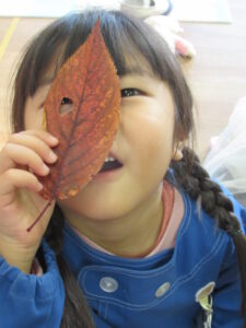 普段は遊具や玩具などで遊ぶことが多い子も、落ち葉を集めるときには夢中で気に入った葉っぱを探していました。