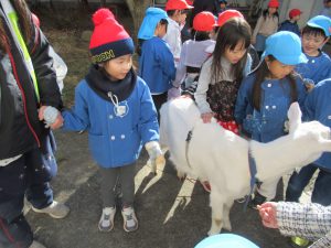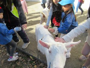 中込小学校の2年生に招待状をいただきヤギと触れ合わせていただきました。