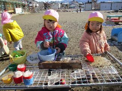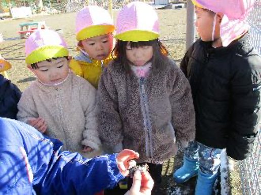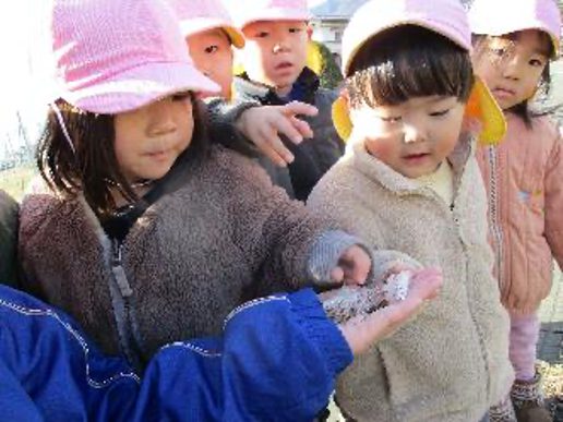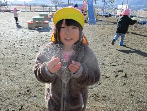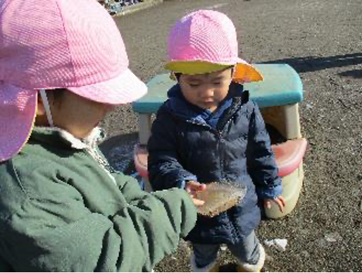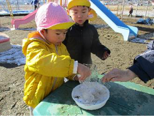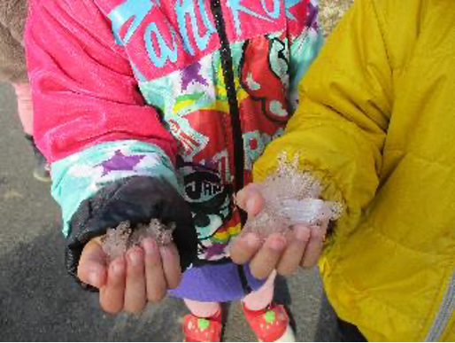 「霜柱だよ」と答えると、この前の園庭で見つけた霜柱だとわかったようです。