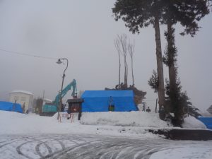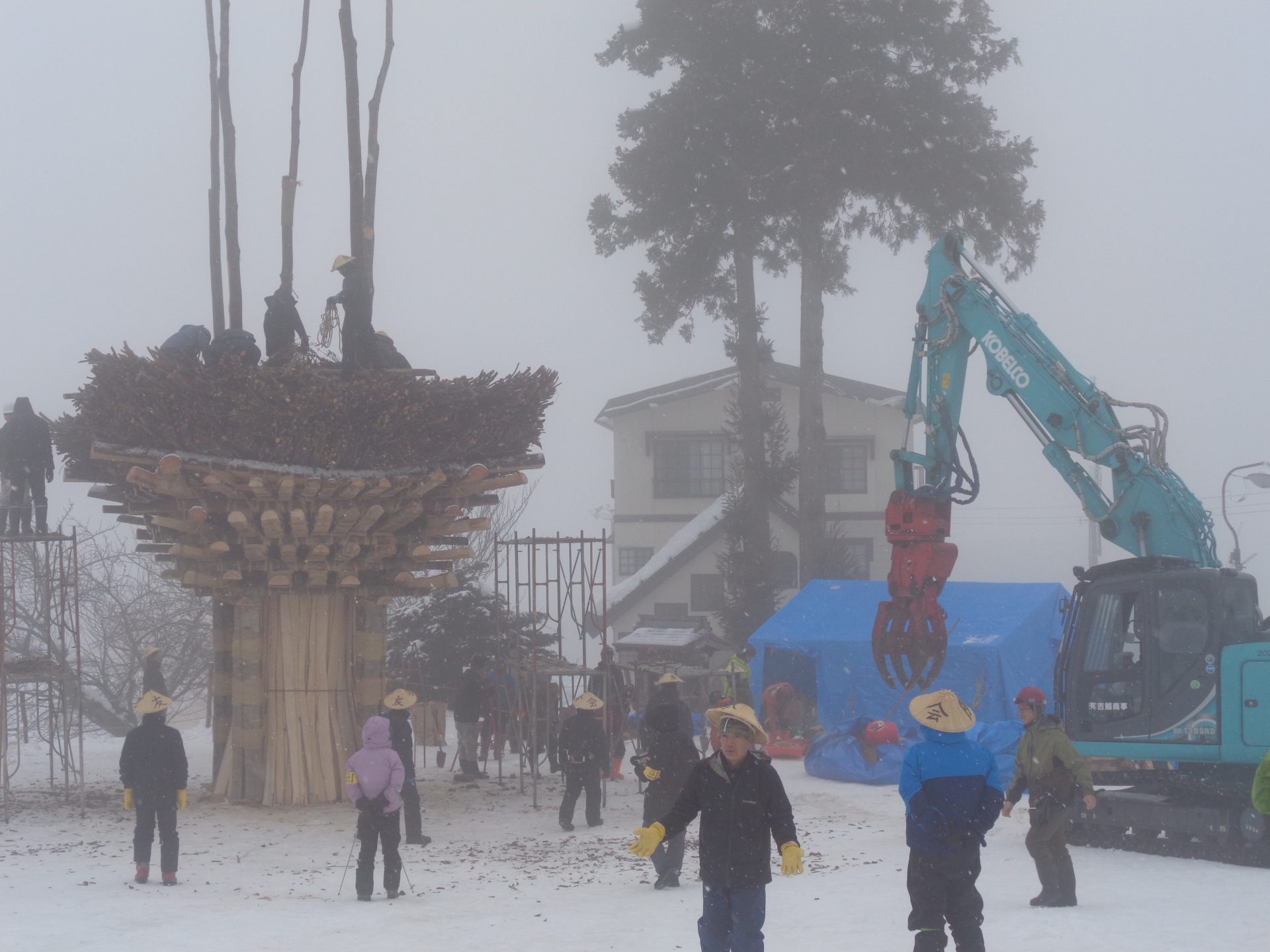 会場では大勢の人たちが社殿作りをしていました。