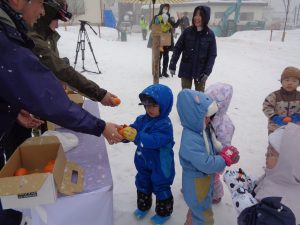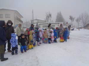 会場にいた地域の方からは、「寒い中、良く見に来てくれたね」、「みんなかわいいなぁ」、「道が滑るから気をつけて帰ってね」と温かい言葉をたくさんかけていただきました。